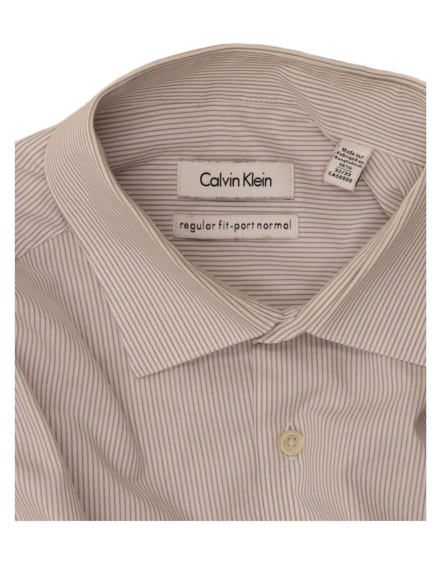 CALVIN KLEIN Mens Regular Fit Shirt Size 16 1/2 Large White Pinstripe
