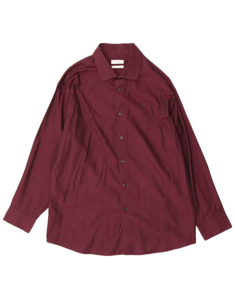 CALVIN KLEIN Mens Regular Fit Shirt Size 17 1/2 XL Maroon Cotton