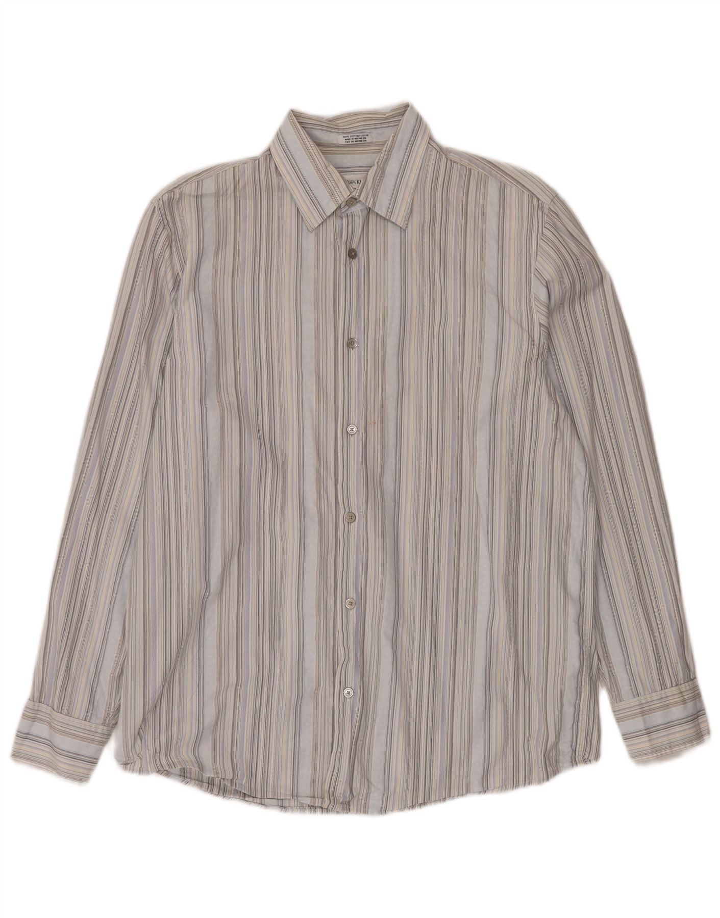 CALVIN KLEIN Mens Shirt Medium Blue Striped Cotton