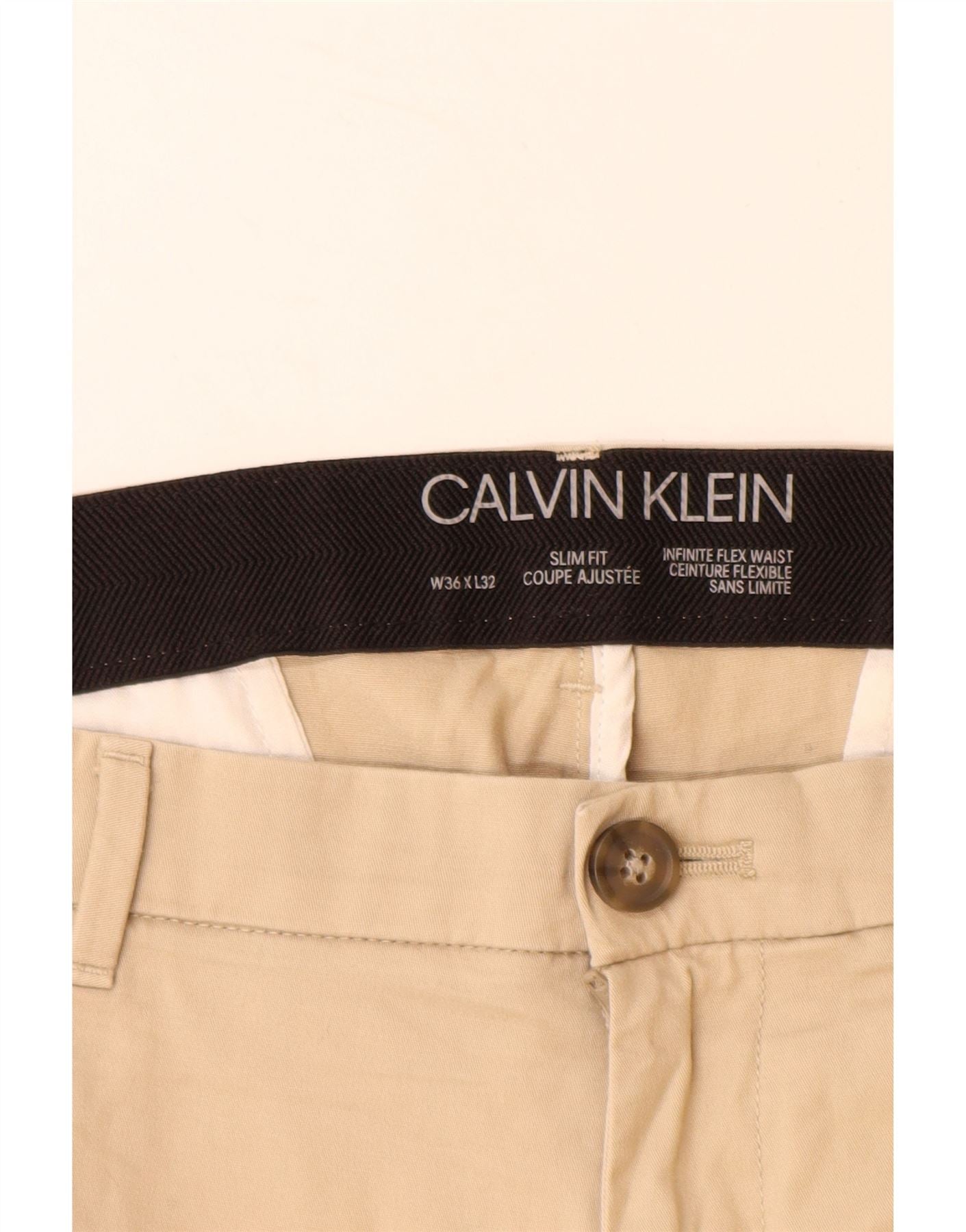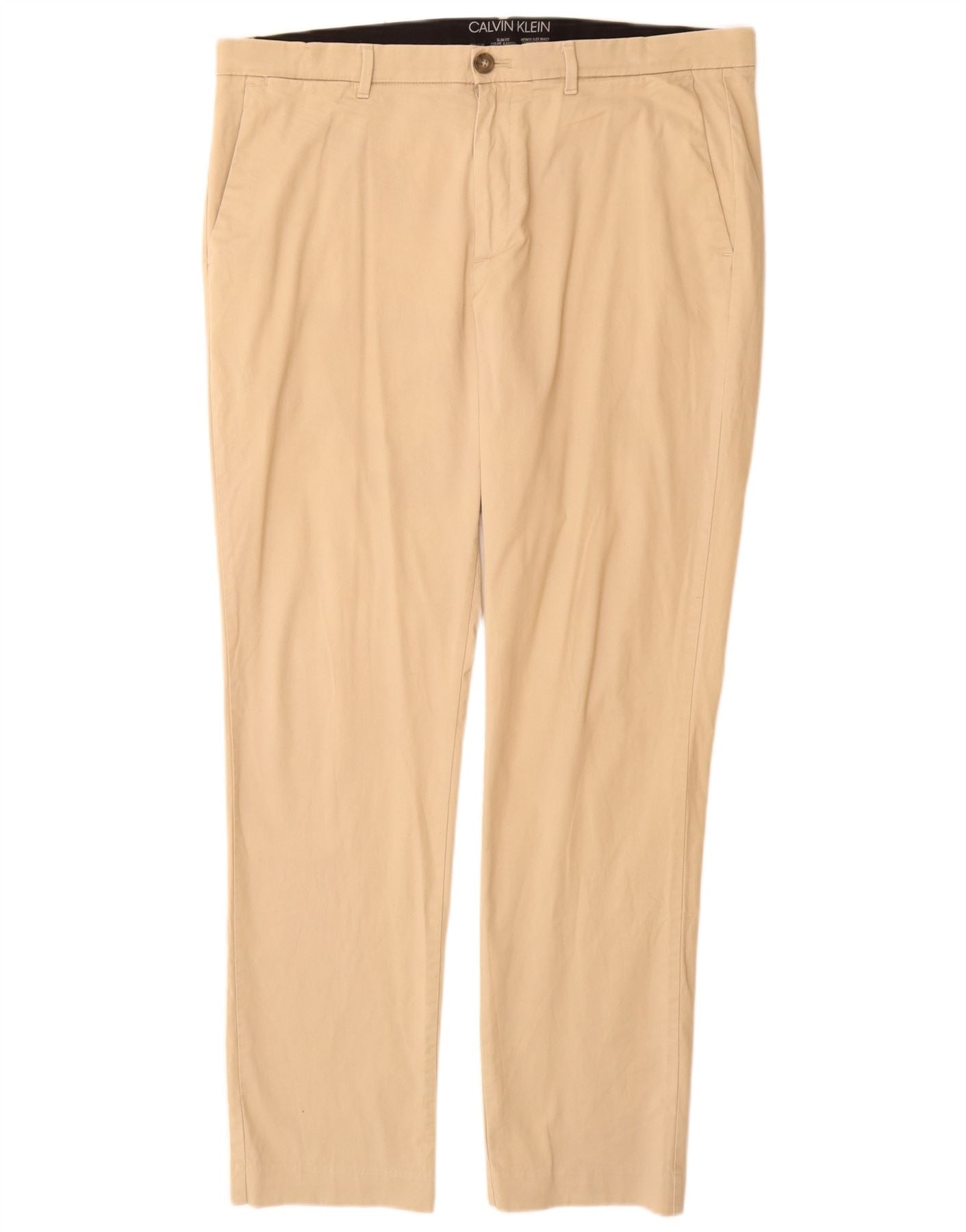 CALVIN KLEIN Mens Slim Fit Chino Trousers W36 L32 Beige Cotton