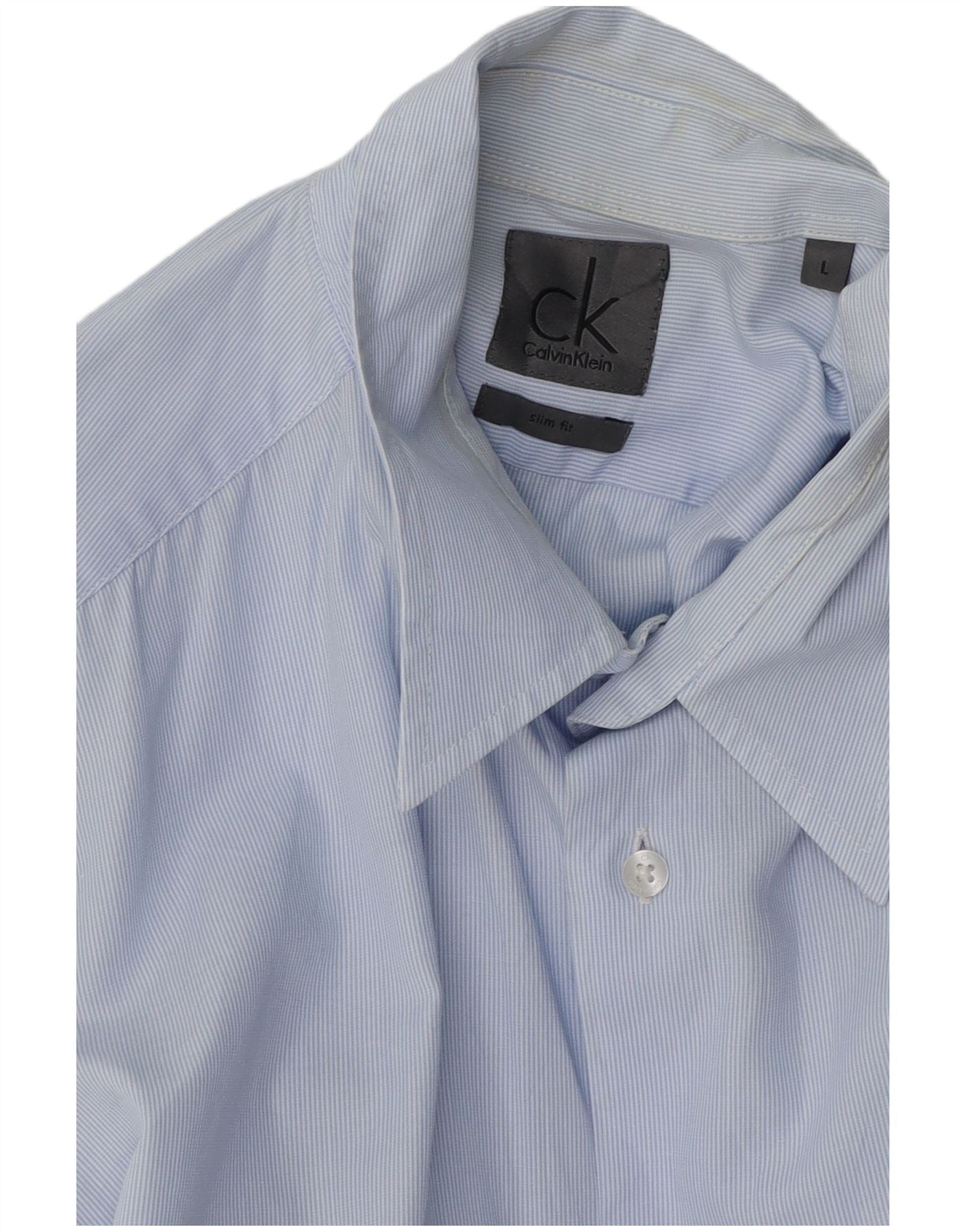 CALVIN KLEIN Mens Slim Fit Shirt Large Blue Pinstripe