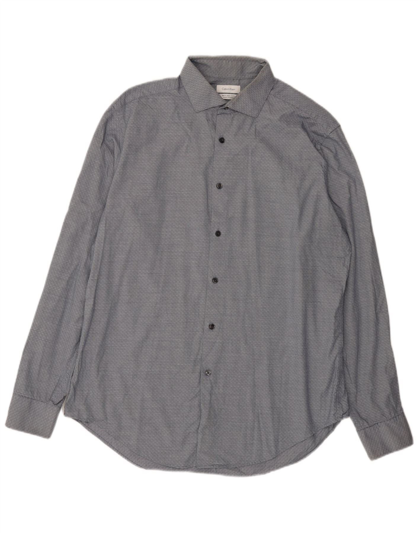 Calvin Klein Mens Slim Fit Shirt Large Navy Blue Geometric