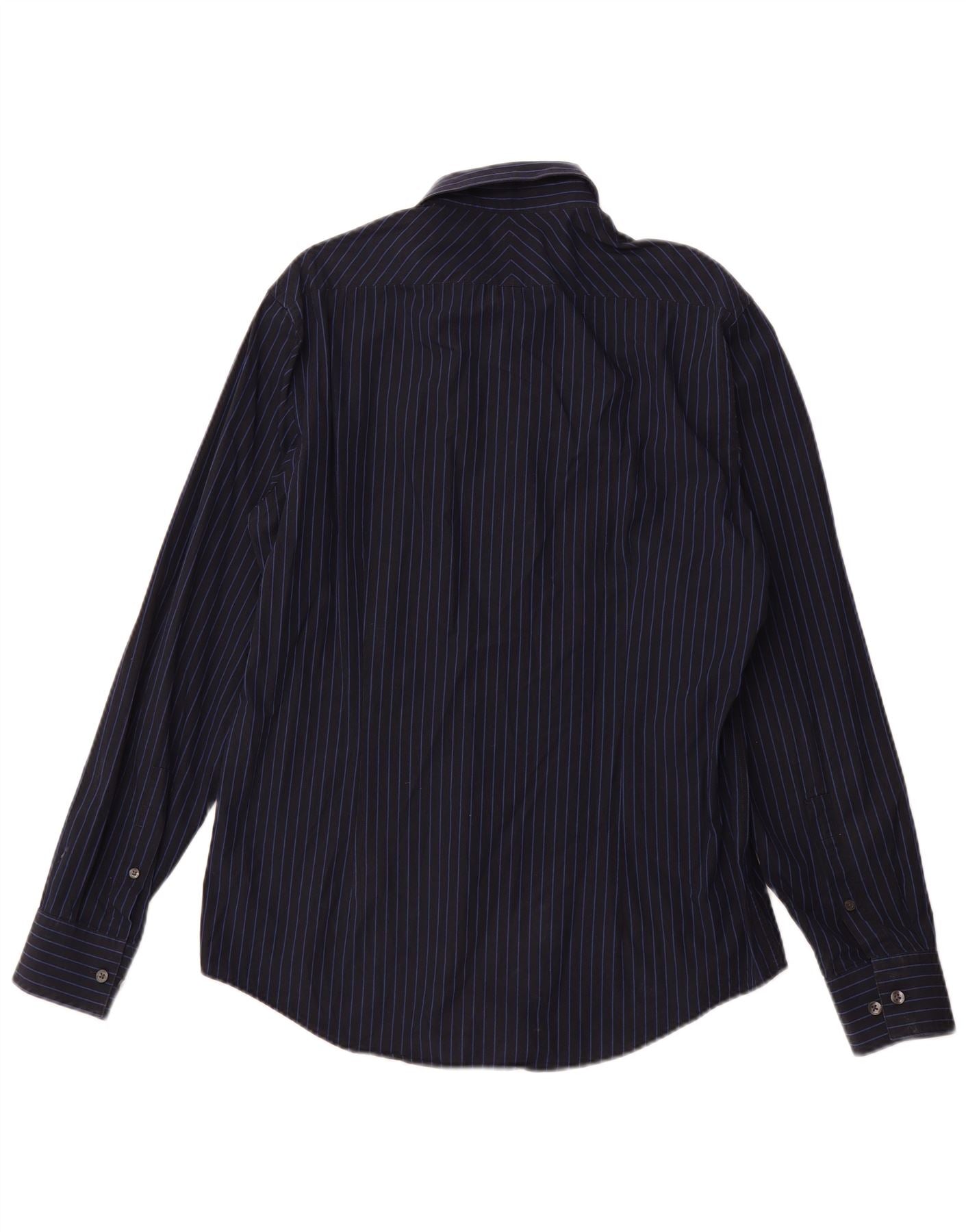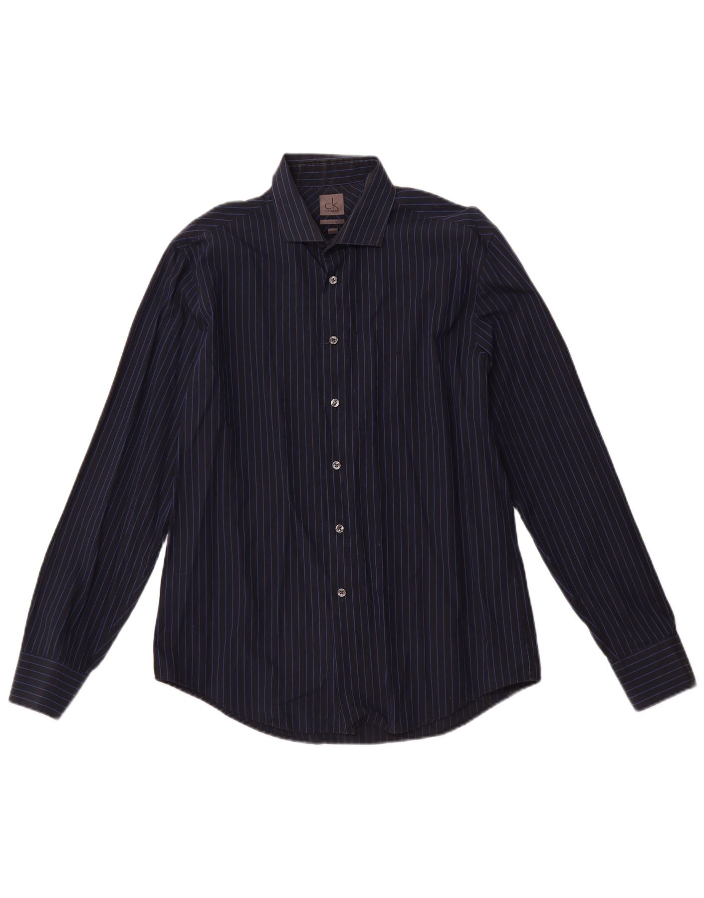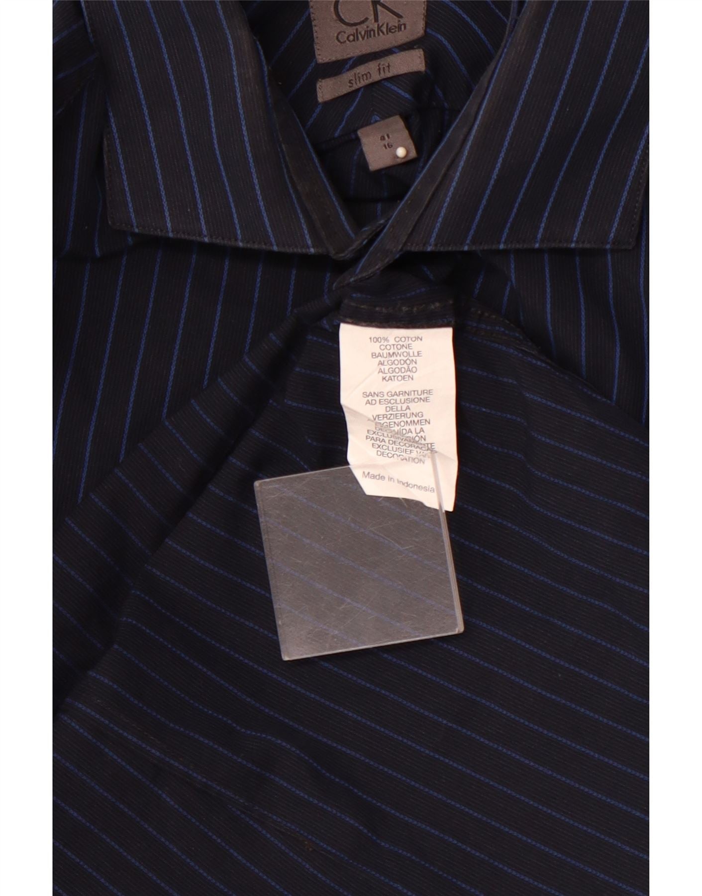 CALVIN KLEIN Mens Slim Fit Shirt Size 16 41 Large Navy Blue Striped Cotton