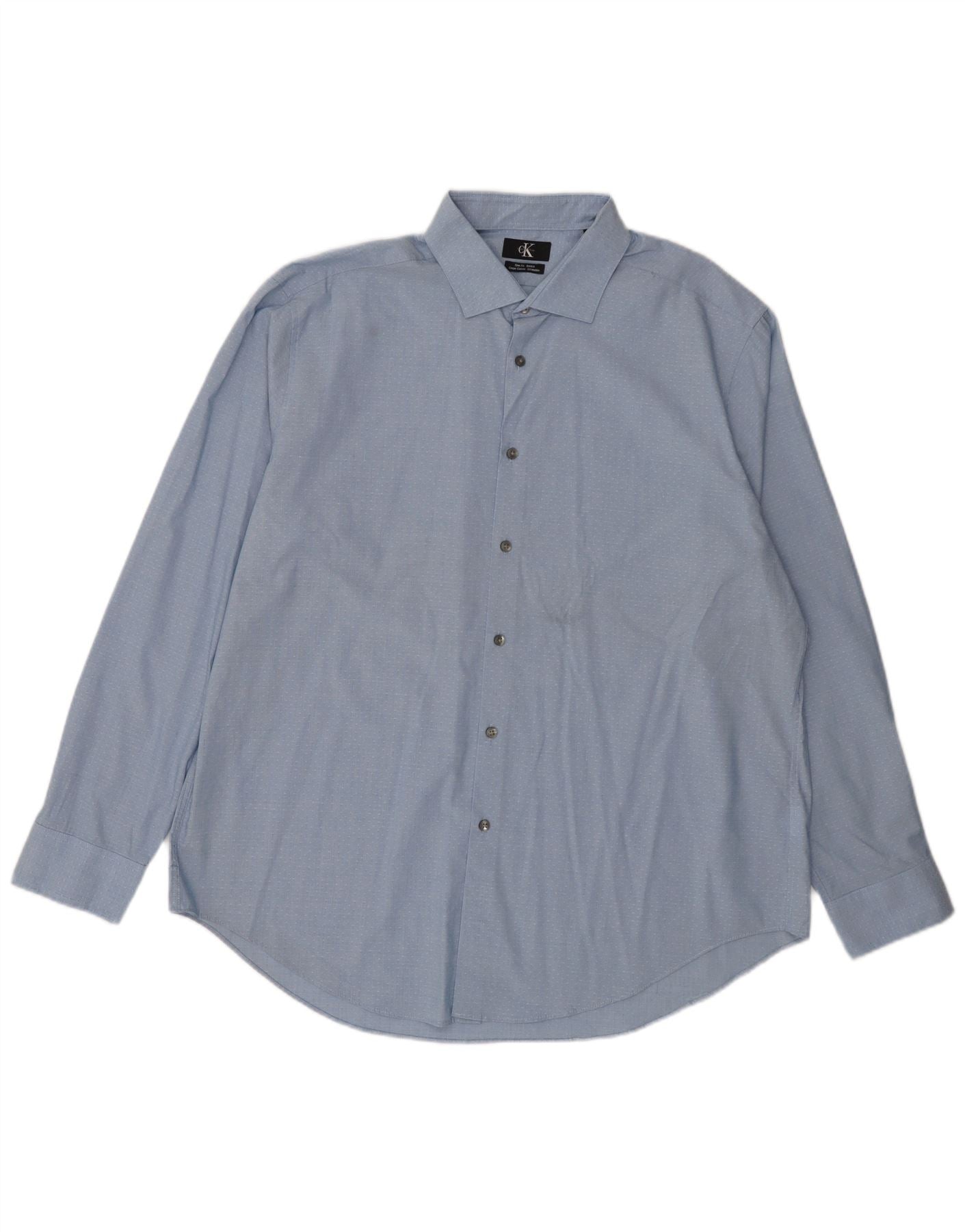 CALVIN KLEIN Mens Slim Fit Shirt Size 18 2XL Blue Spotted Cotton