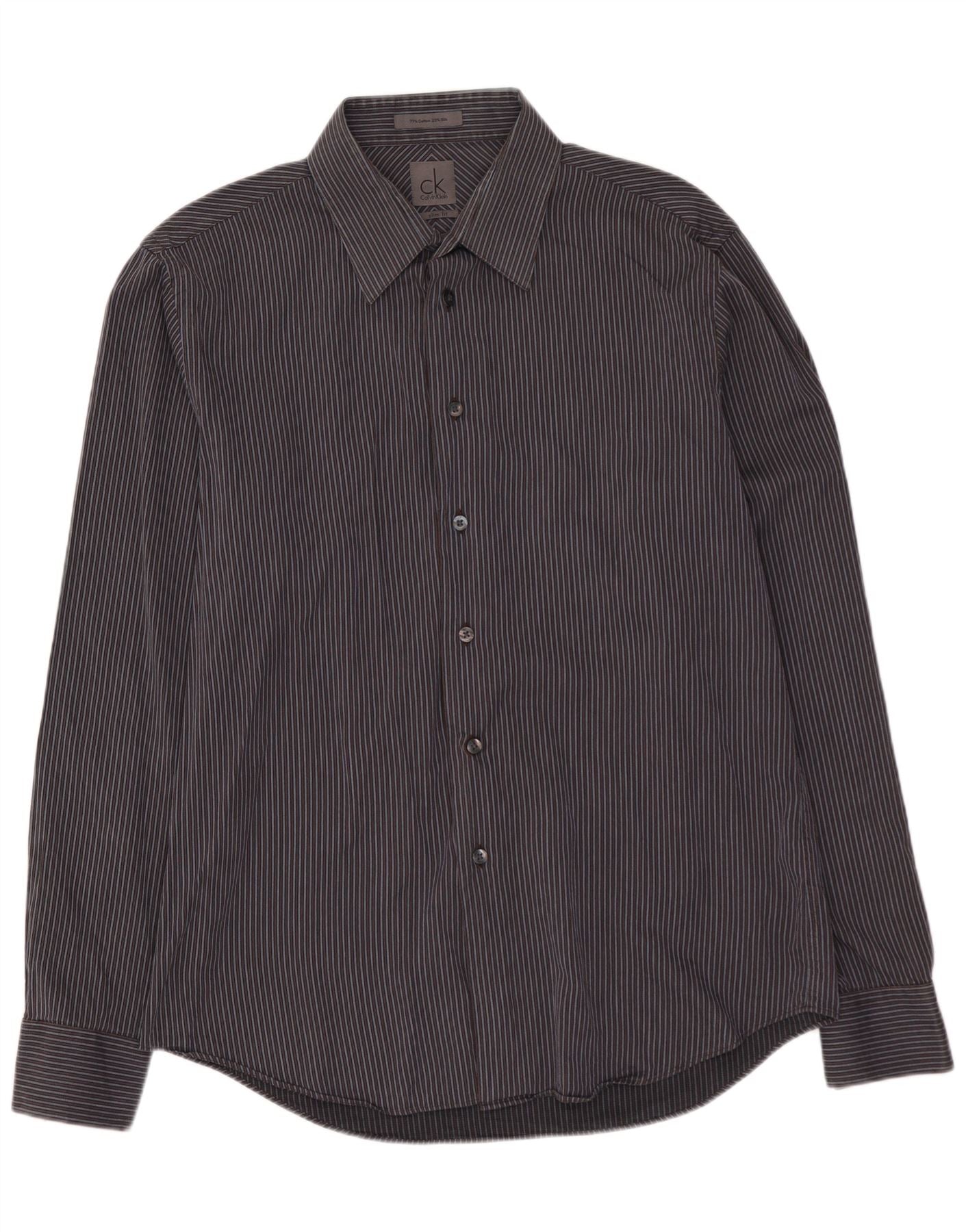 CALVIN KLEIN Mens Slim Fit Shirt Size 41 16 Large Grey Striped Cotton