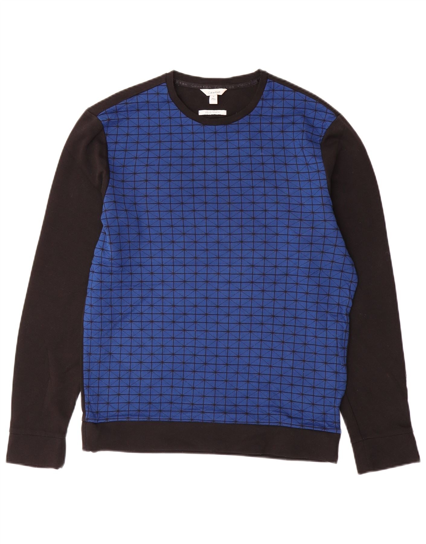 CALVIN KLEIN Mens Sweatshirt Jumper XS Blue Geometric Cotton