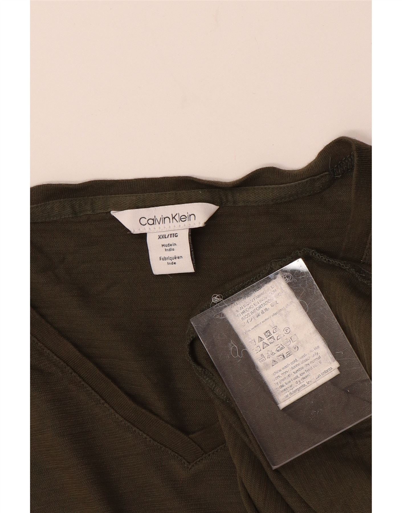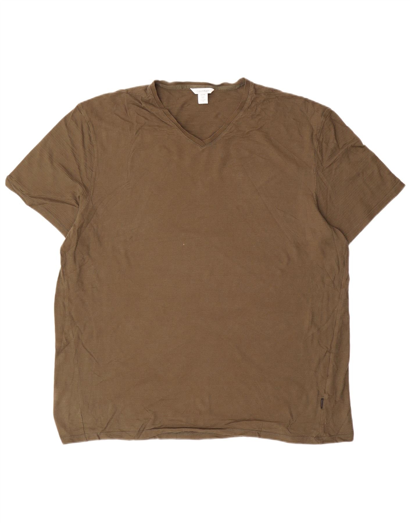 CALVIN KLEIN Mens T-Shirt Top 2XL Khaki Cotton