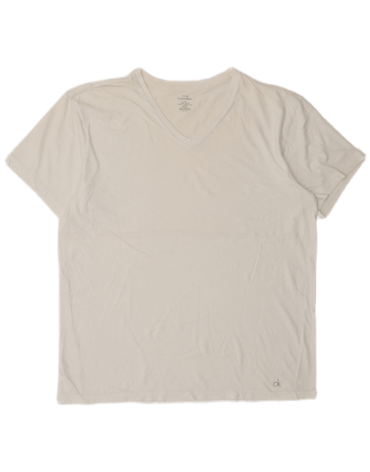 - AI Description: This Calvin Klein mens T-shirt is crafted from soft white jersey fabric. It features a classic V-neckline and comfortable short sleeves. The pullover design ensures easy wear. A regular fit provides a relaxed yet smart silhouette. The minimalist style is enhanced by a subtle ck logo detail at the hem. This piece offers everyday comfort and timeless appeal.