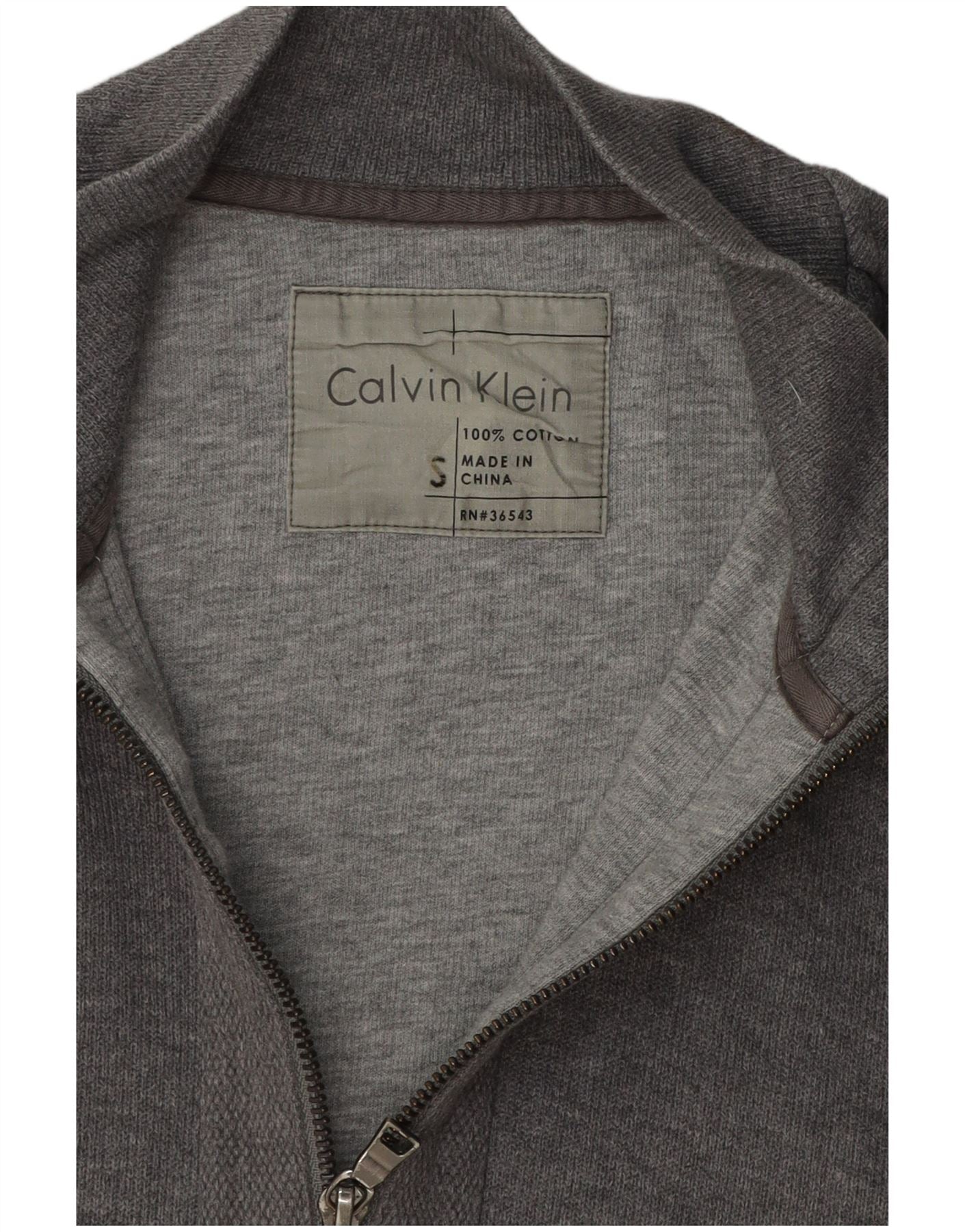 CALVIN KLEIN Mens Tracksuit Top Jacket Small Grey Cotton