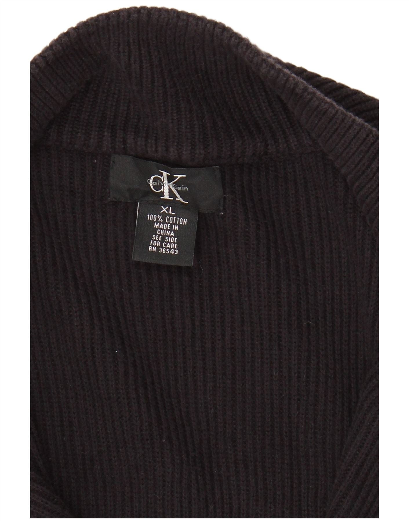 CALVIN KLEIN Mens Zip Neck Jumper Sweater XL Black Cotton