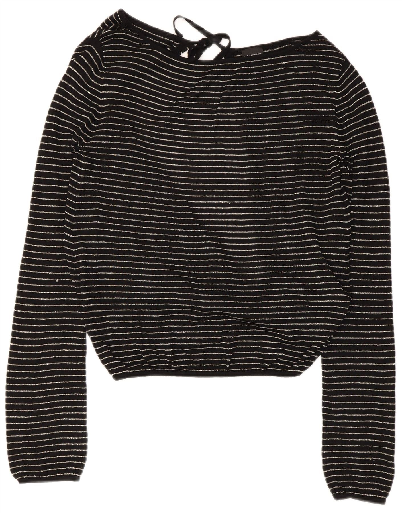 Calvin Klein Womens Crop Blouse Top UK 14 Large Black Striped Viscose