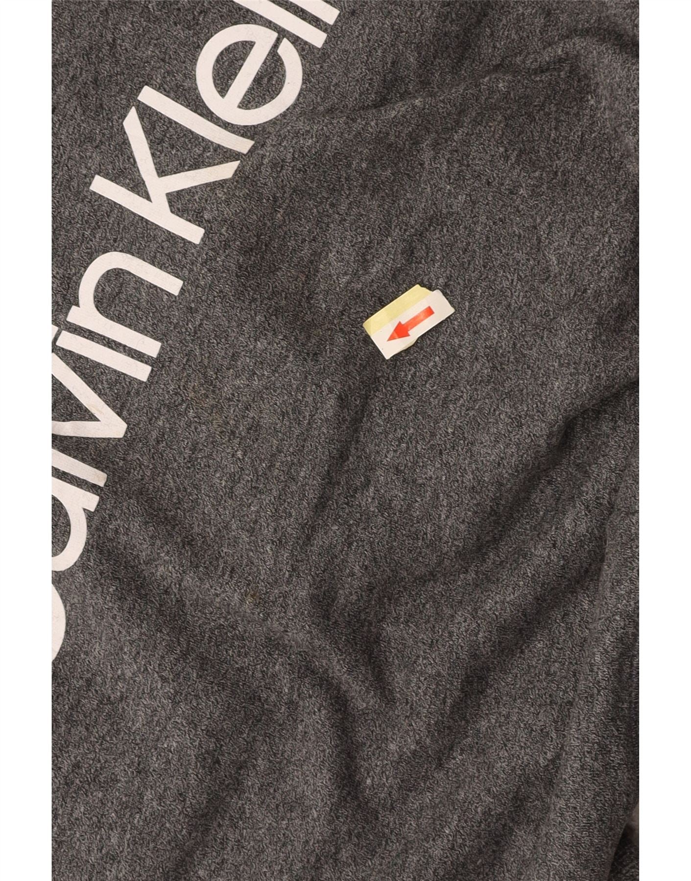 CALVIN KLEIN Womens Crop Graphic Sweatshirt Jumper UK 18 XL Grey Flecked