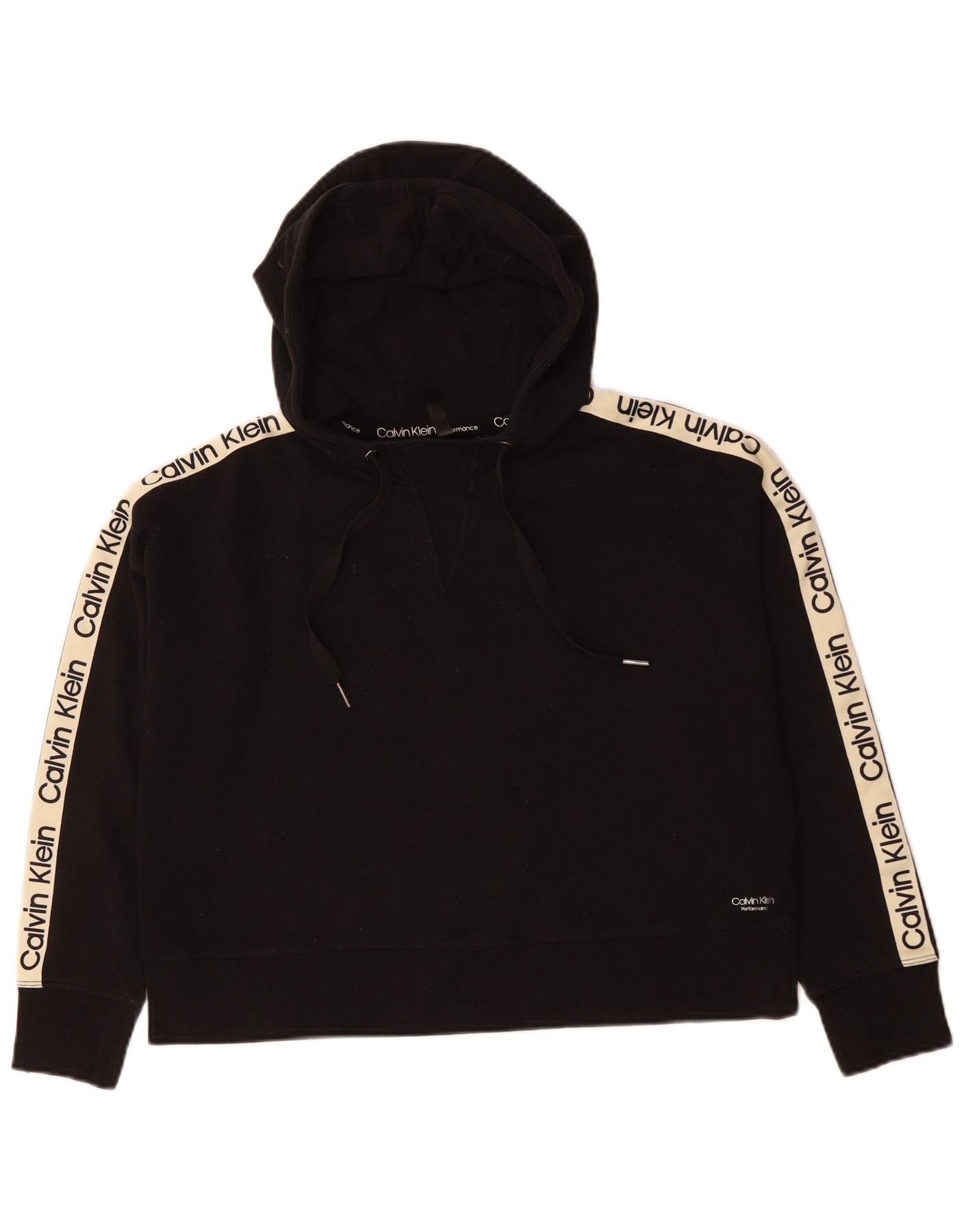 Home > Women's > Depop Clothing > Calvin Klein Womens Crop Hoodie Jumper UK 12 Medium Black Colourblock
