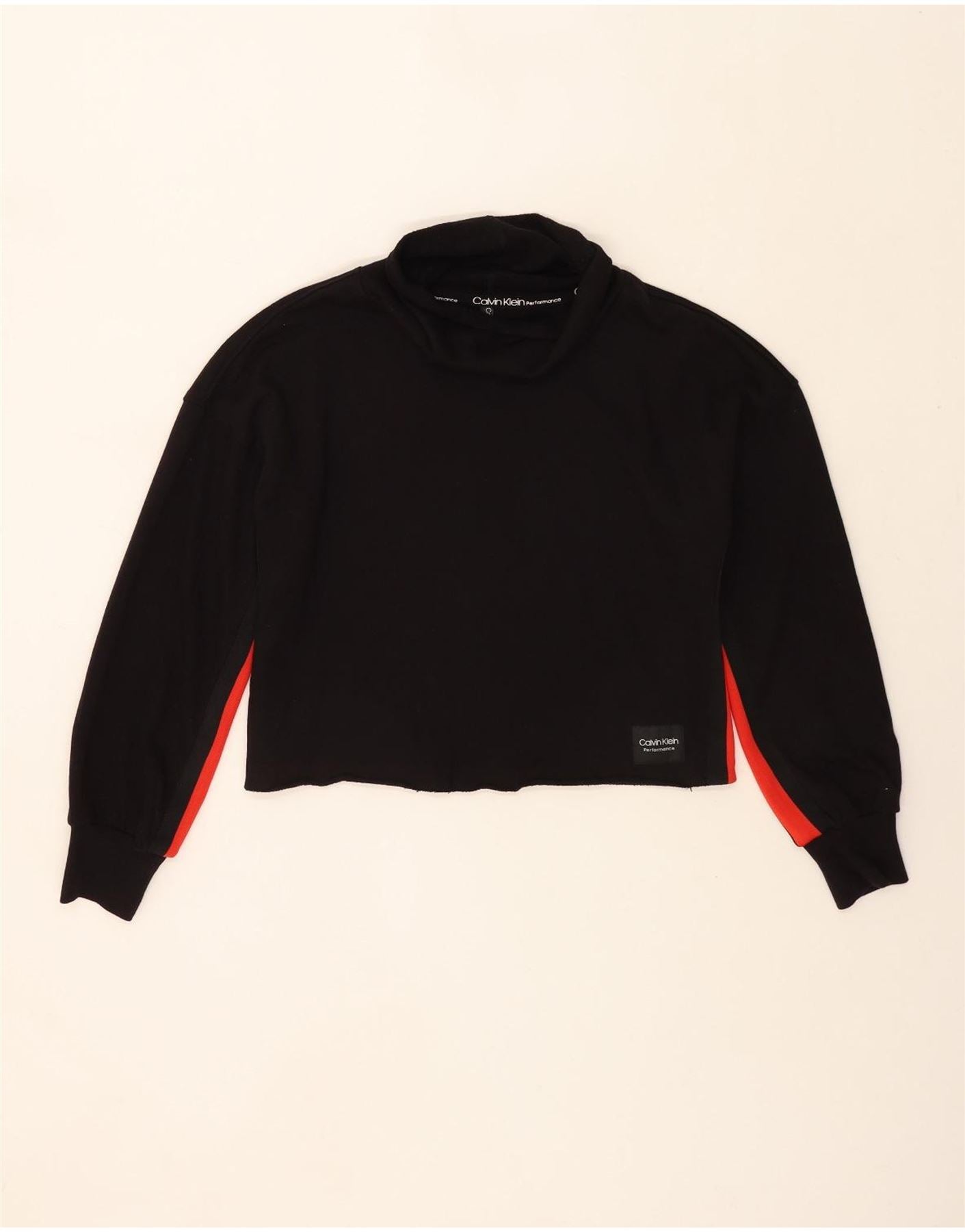 CALVIN KLEIN Womens Crop Top Long Sleeve UK 10 Small Black Colourblock