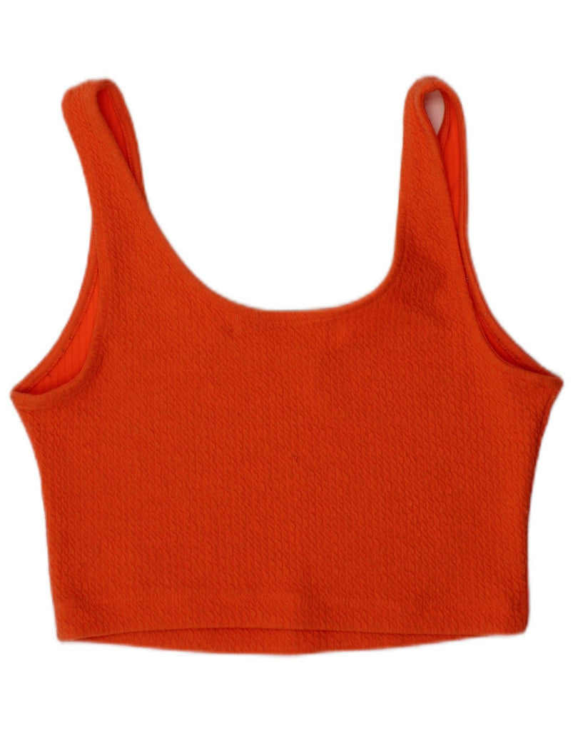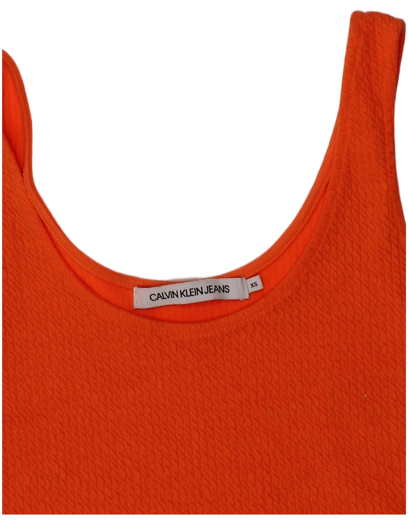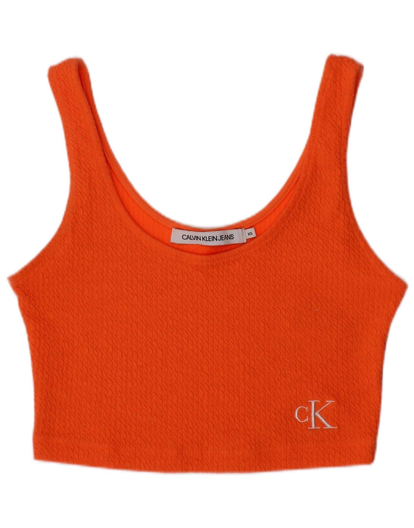 CALVIN KLEIN Womens Graphic Crop Top UK 4 XS Orange Polyester Modern
