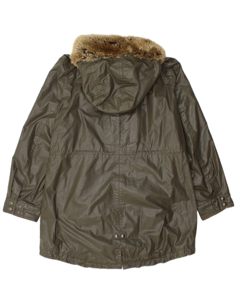CALVIN KLEIN Womens Hooded Parka Jacket UK 16 Large Khaki Cotton