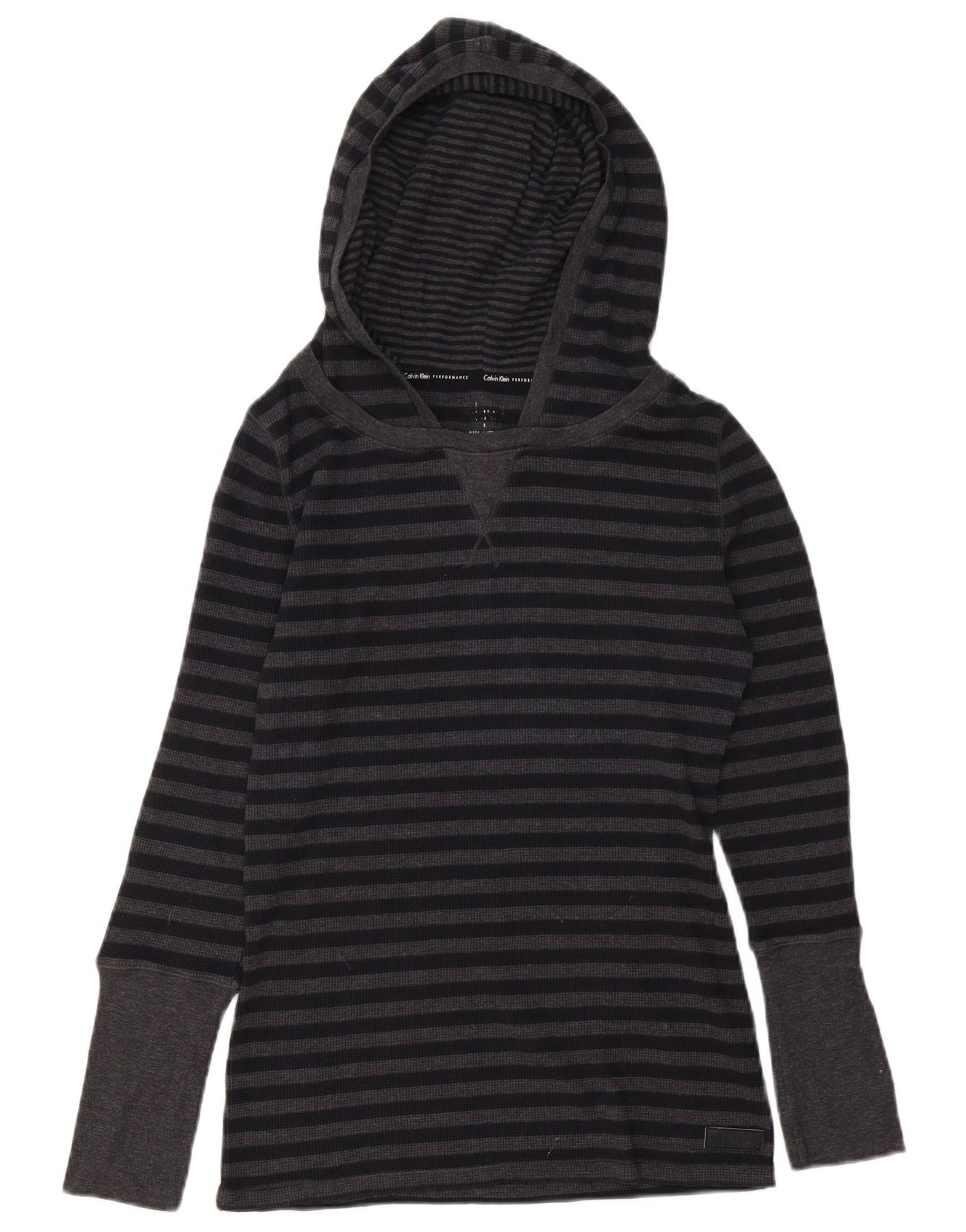 Calvin Klein Womens Hooded Top Long Sleeve UK 12 Medium Grey Striped Cotton