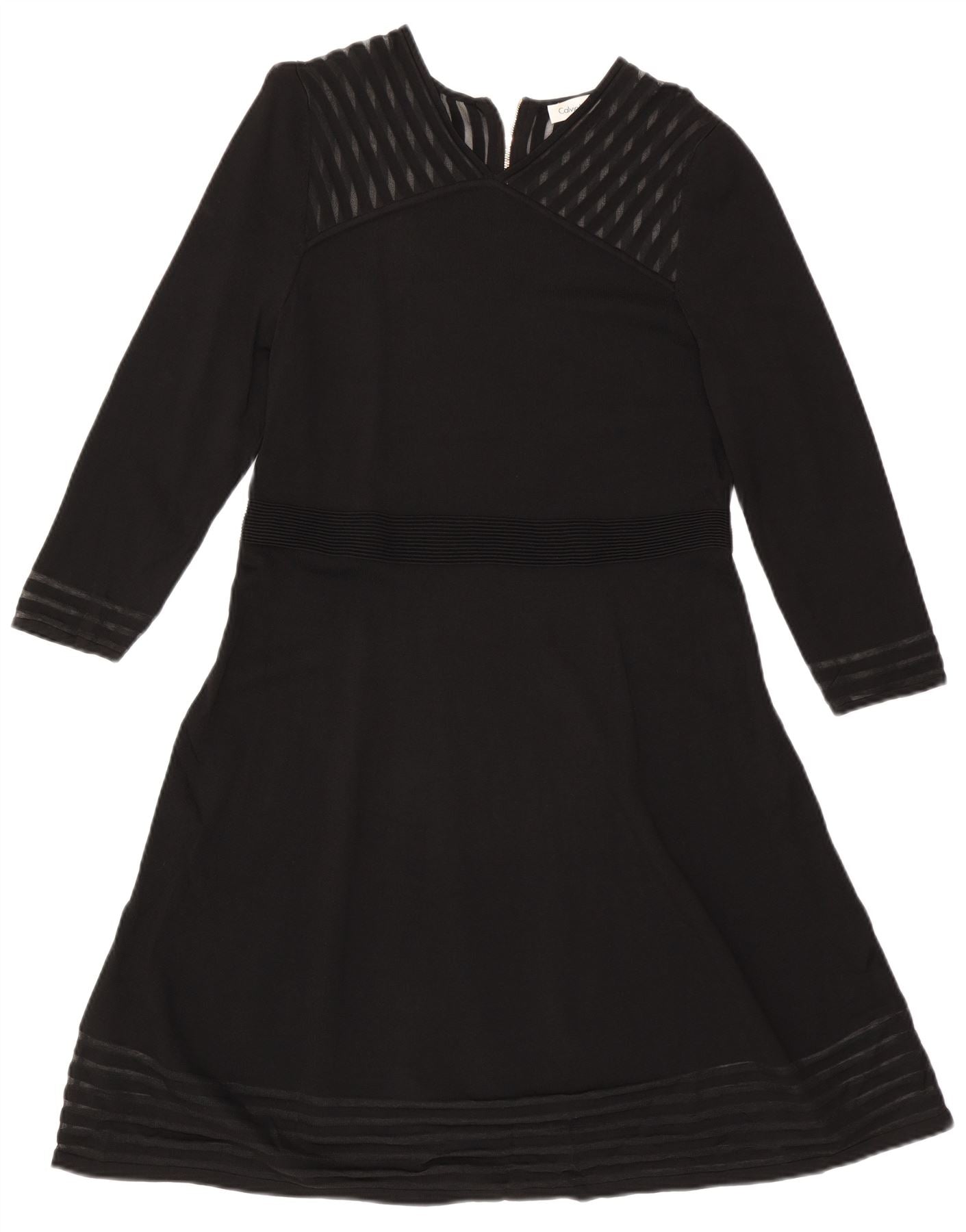 CALVIN KLEIN Womens Long Sleeve A-Line Dress UK 18 XL Black Striped Rayon