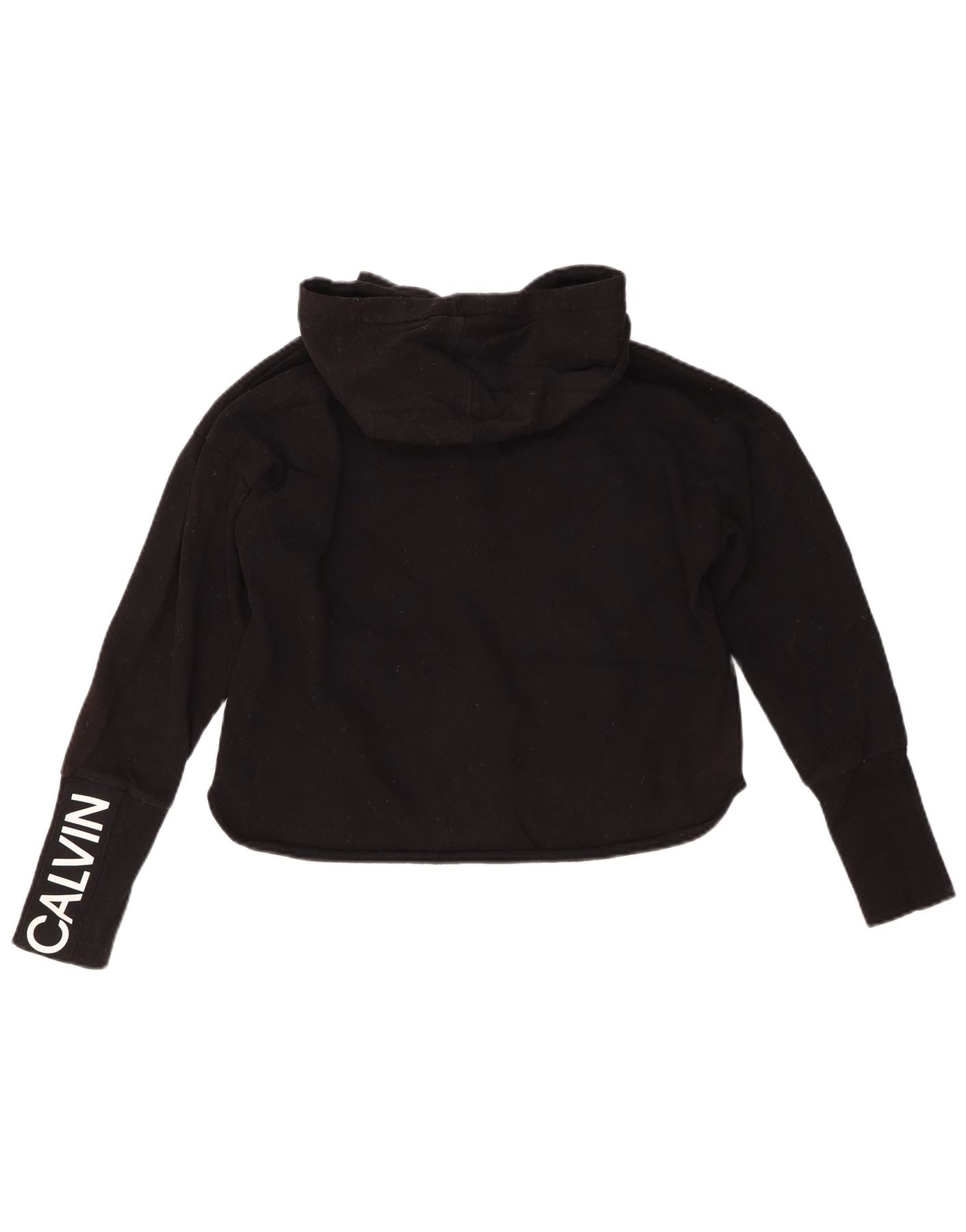 CALVIN KLEIN Womens Oversized Graphic Zip Hoodie Sweater UK 10 Small Black