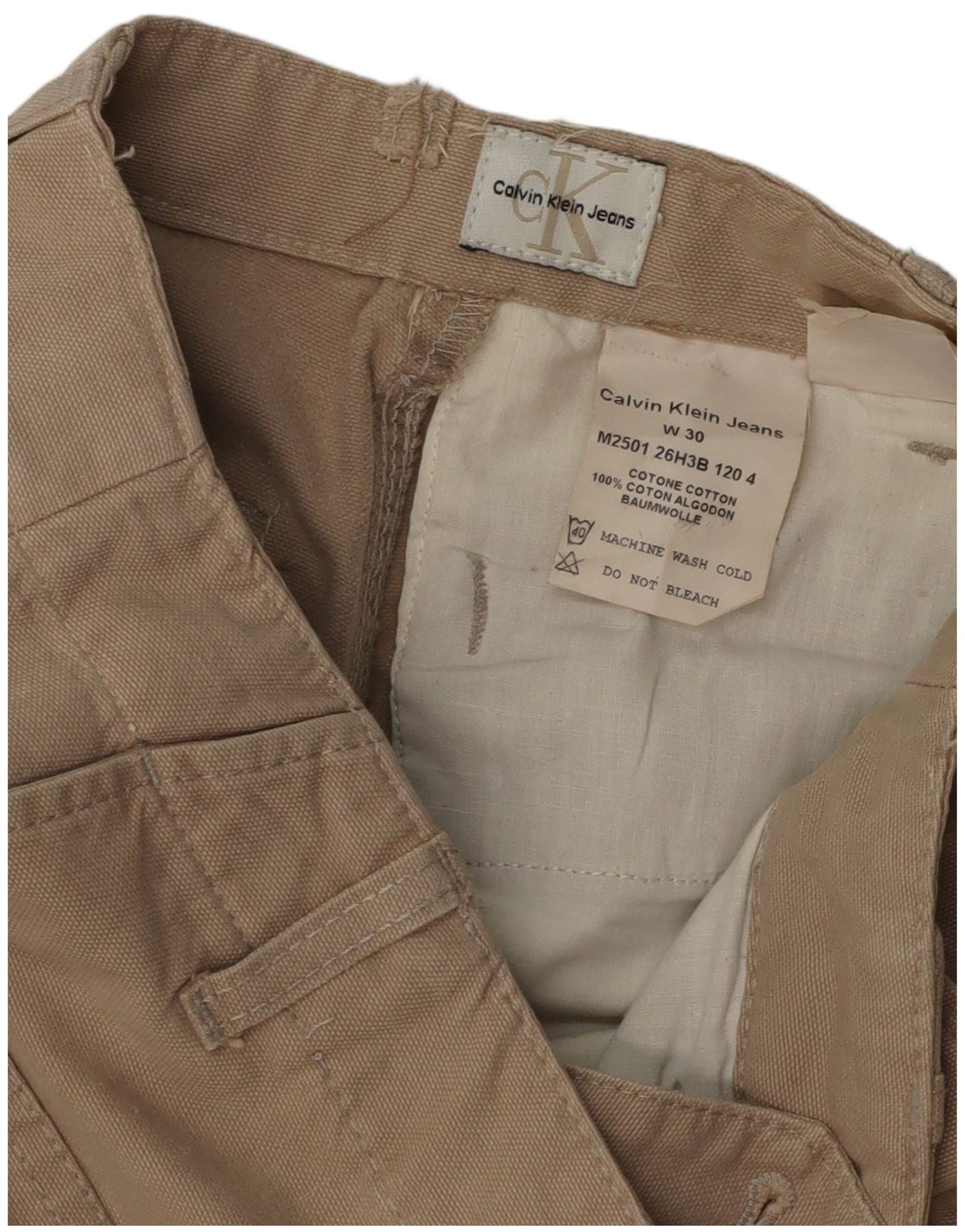 CALVIN KLEIN Womens Straight Chino Trousers W30 L34 Beige Cotton
