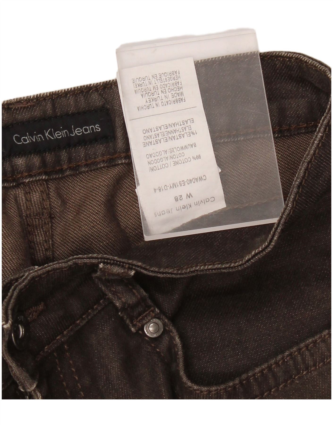 CALVIN KLEIN Womens Straight Jeans W28 L30 Brown Cotton