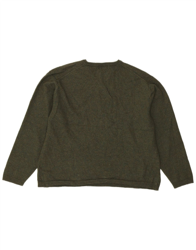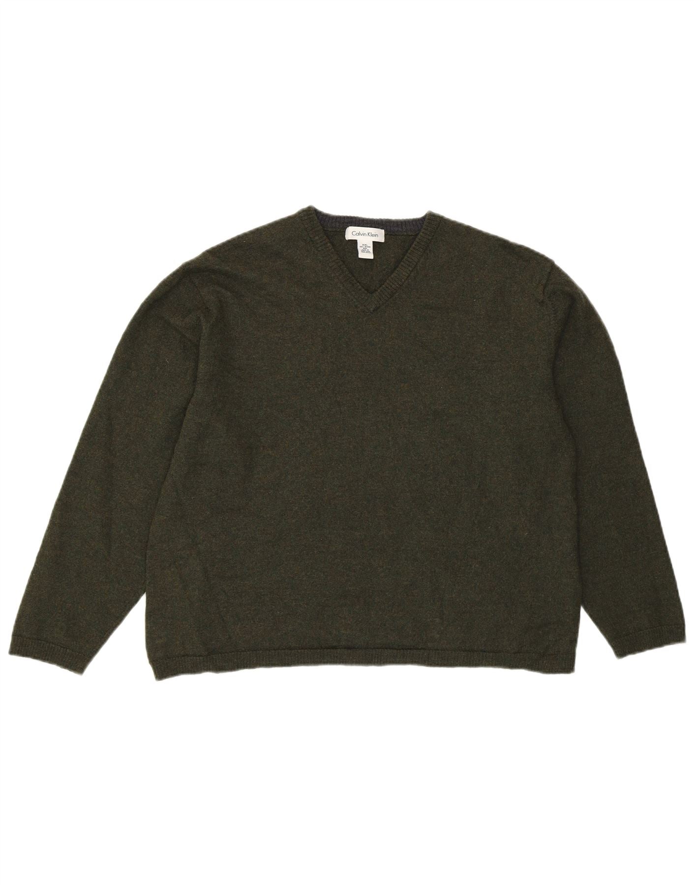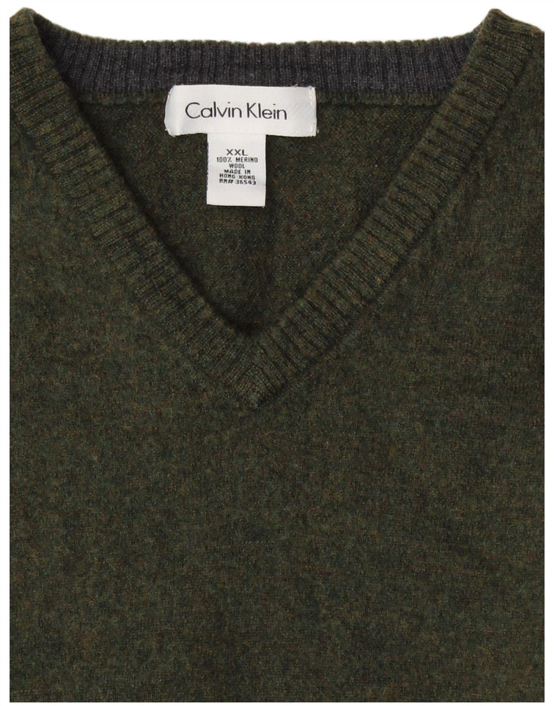 CALVIN KLEIN Womens V-Neck Jumper Sweater UK 20 2XL Khaki Merino Wool