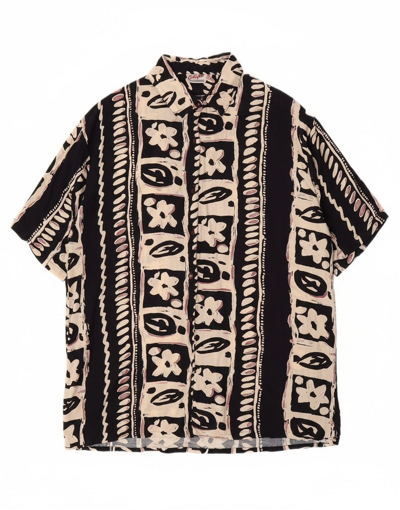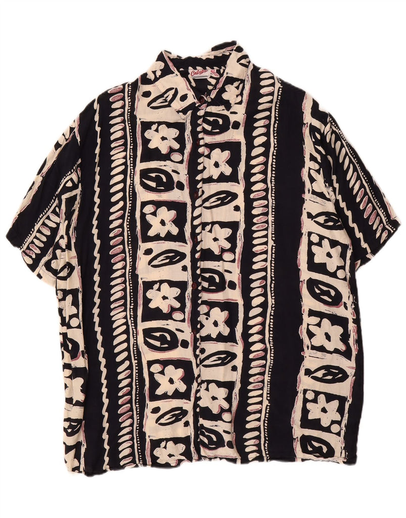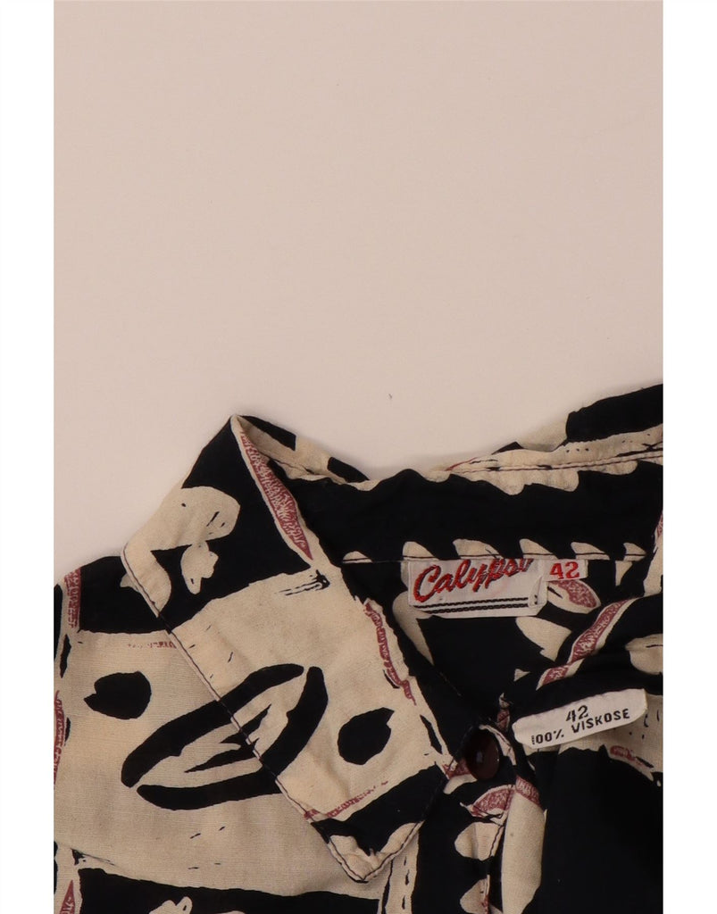 CALYPSO Womens Short Sleeve Shirt Blouse IT 42 Medium Black Floral Viscose