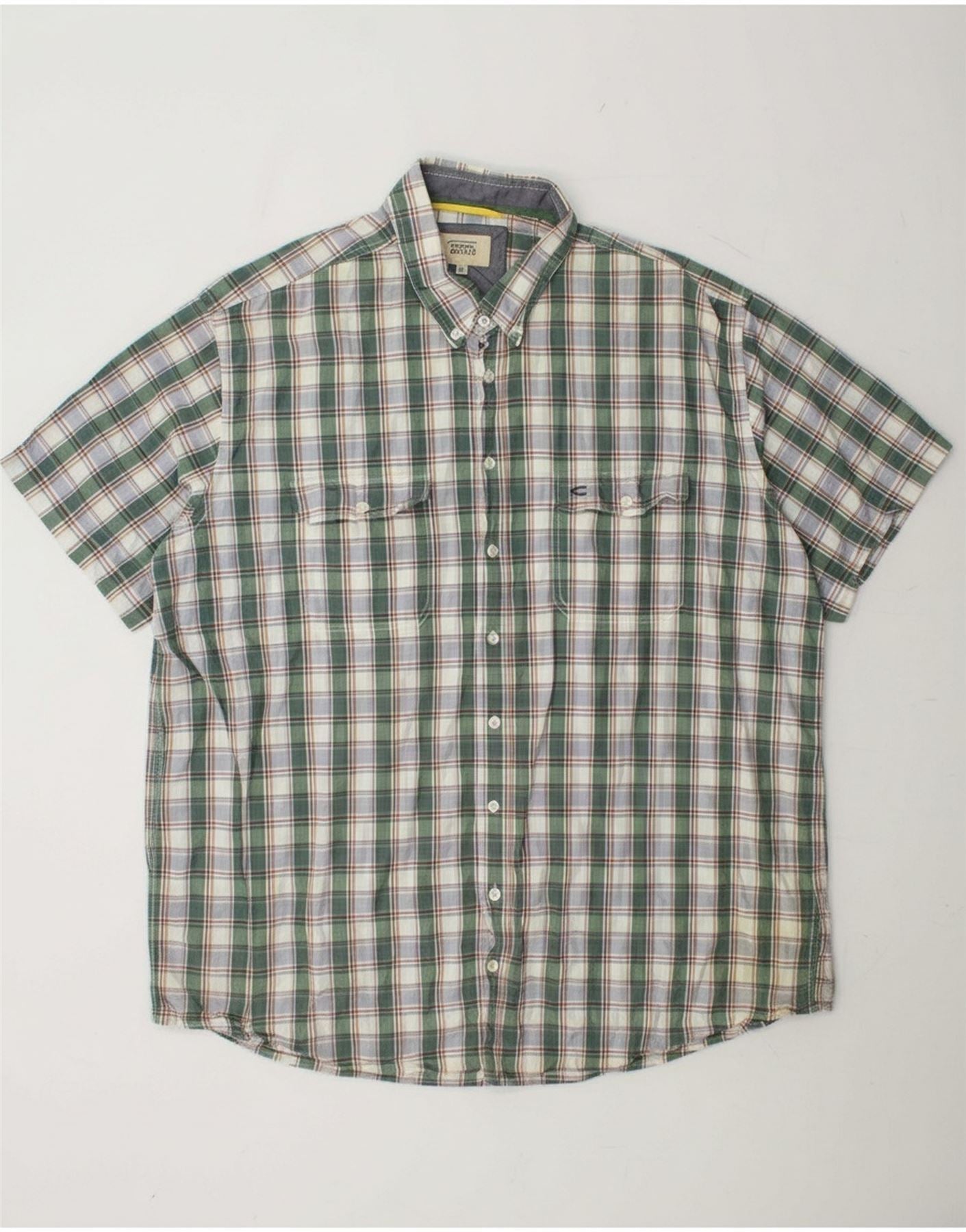 - AI Description: This Camel Active men's shirt features a classic multicoloured plaid pattern on a woven fabric. The collared neckline and short sleeves offer a traditional, comfortable fit. A full button-up front ensures versatile styling. Practical pockets enhance its utility design. The regular fit ensures ease of movement and a relaxed silhouette.