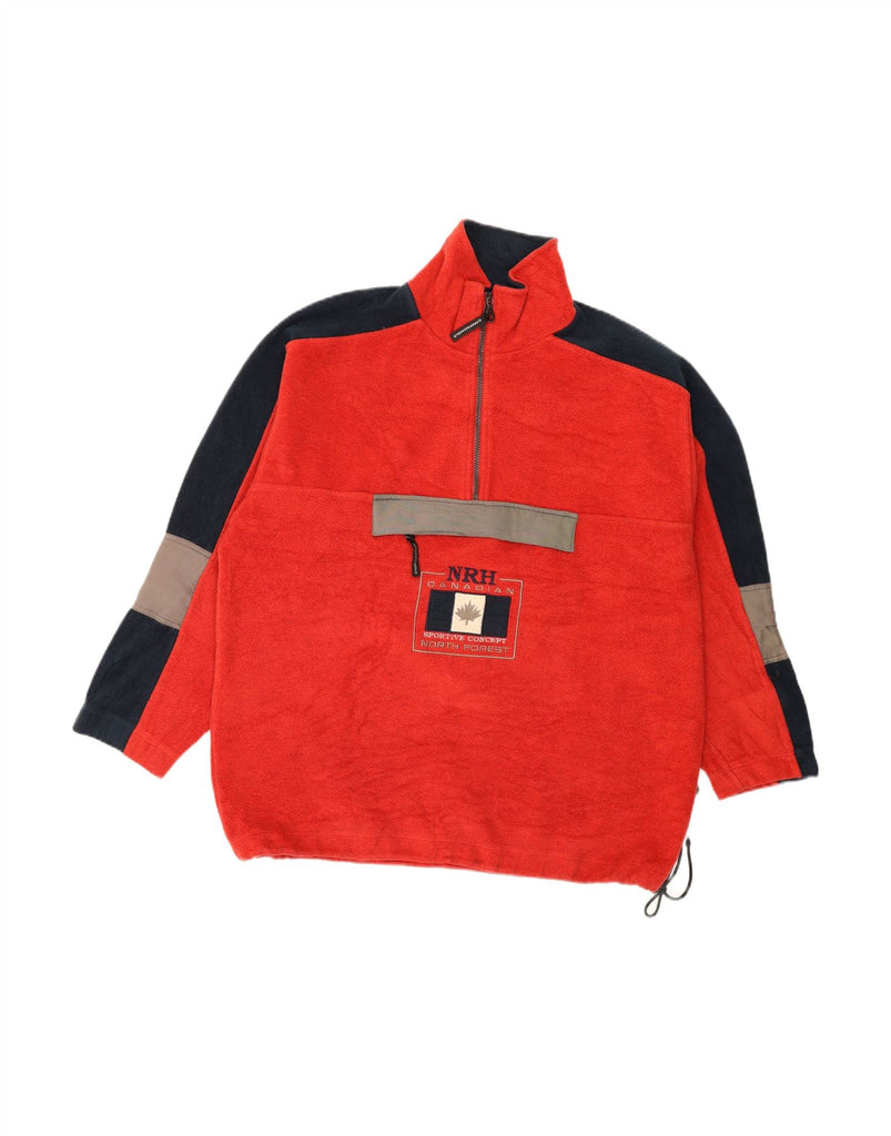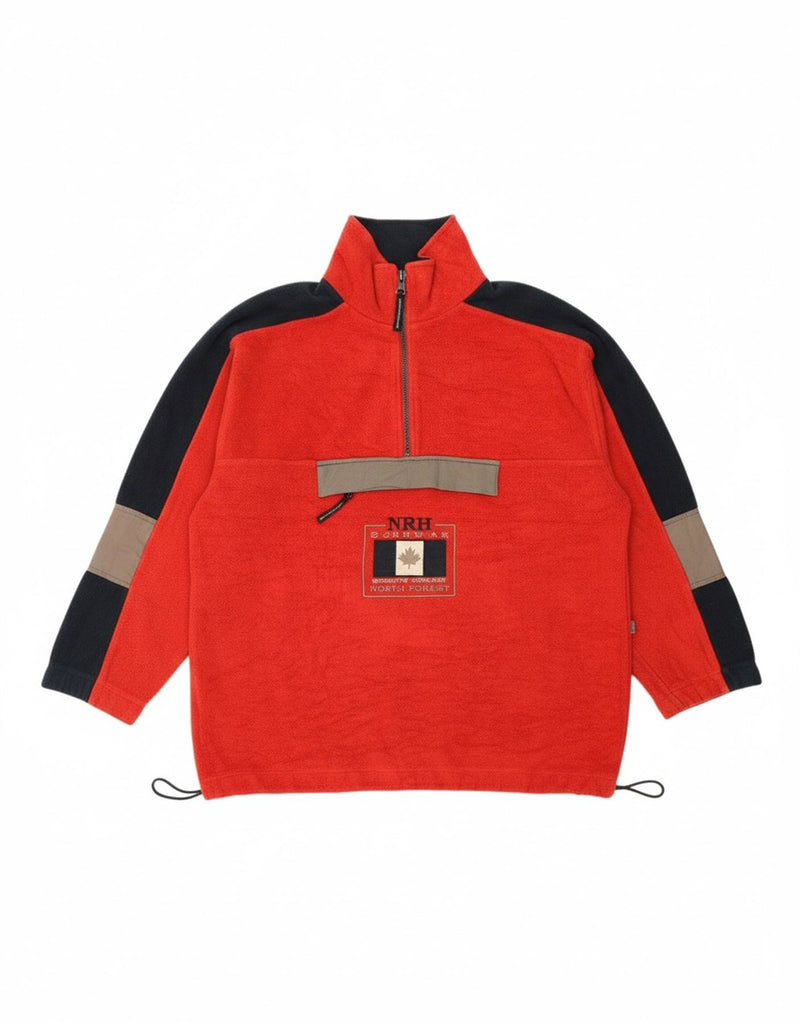 CAMPAGNOLO Mens Graphic Zip Neck Fleece Jumper XL Red Colourblock