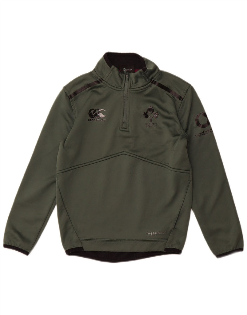 CANTERBURY Boys Ireland Graphic Zip Neck Sweatshirt Jumper 7-8 Years Green