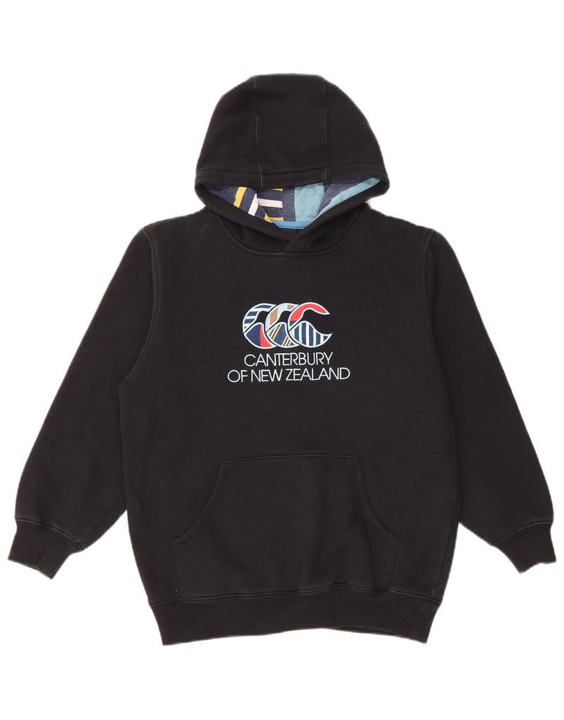 CANTERBURY Girls New Zealand Graphic Hoodie Jumper 9-10 Years Black Cotton
