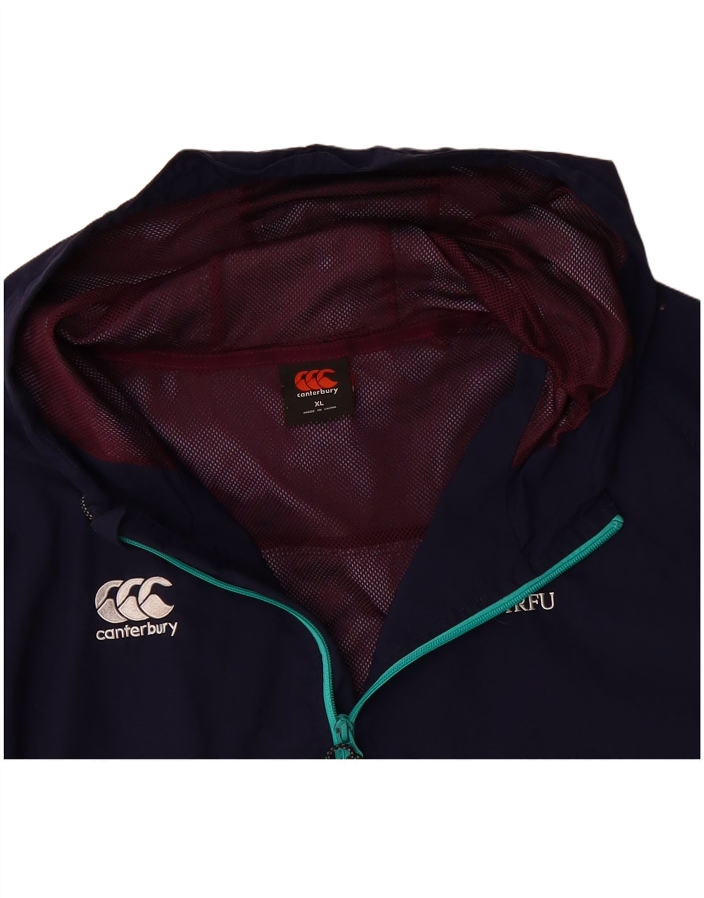 CANTERBURY Mens Ireland Graphic Hooded Rain Jacket UK 42 XL Navy Blue