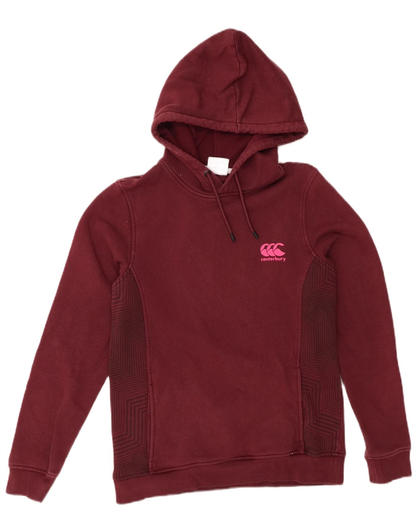 CANTERBURY Womens Hoodie Jumper UK 12 Medium Maroon Geometric Cotton