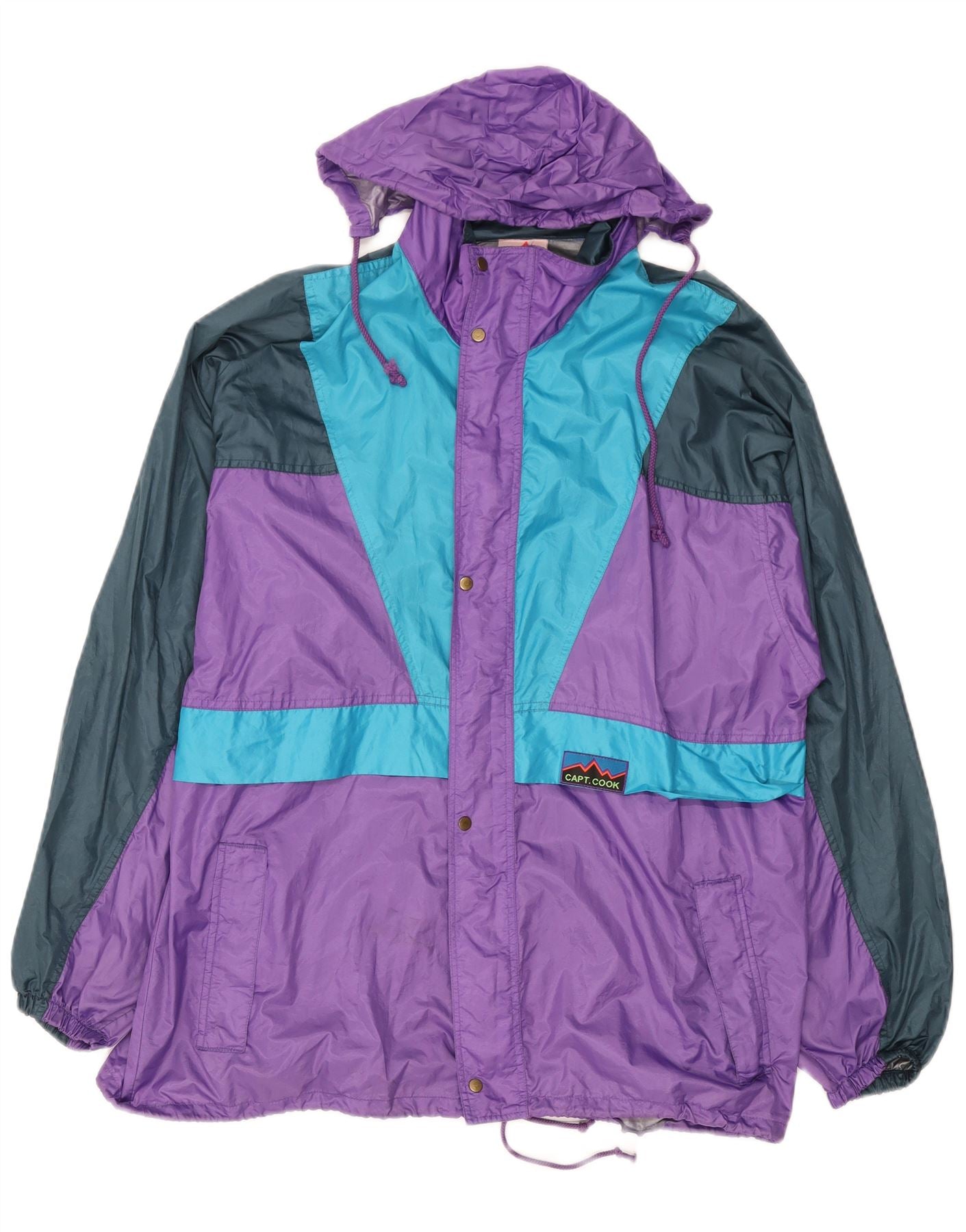 Capt. Cook Mens Hooded Rain Jacket UK 44 2XL Purple Colourblock Retro