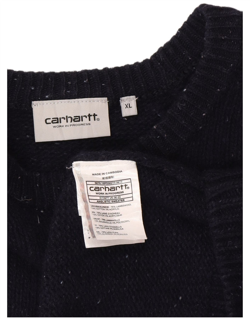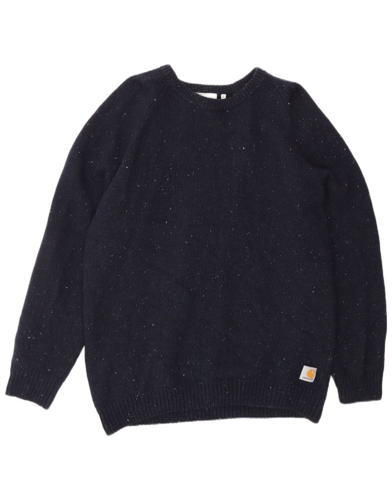 CARHARTT Mens Crew Neck Jumper Sweater XL Navy Blue Flecked Lambswool