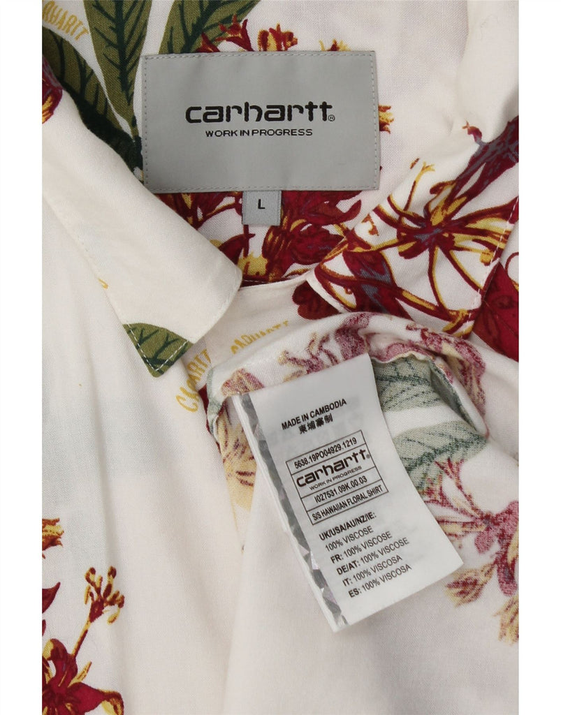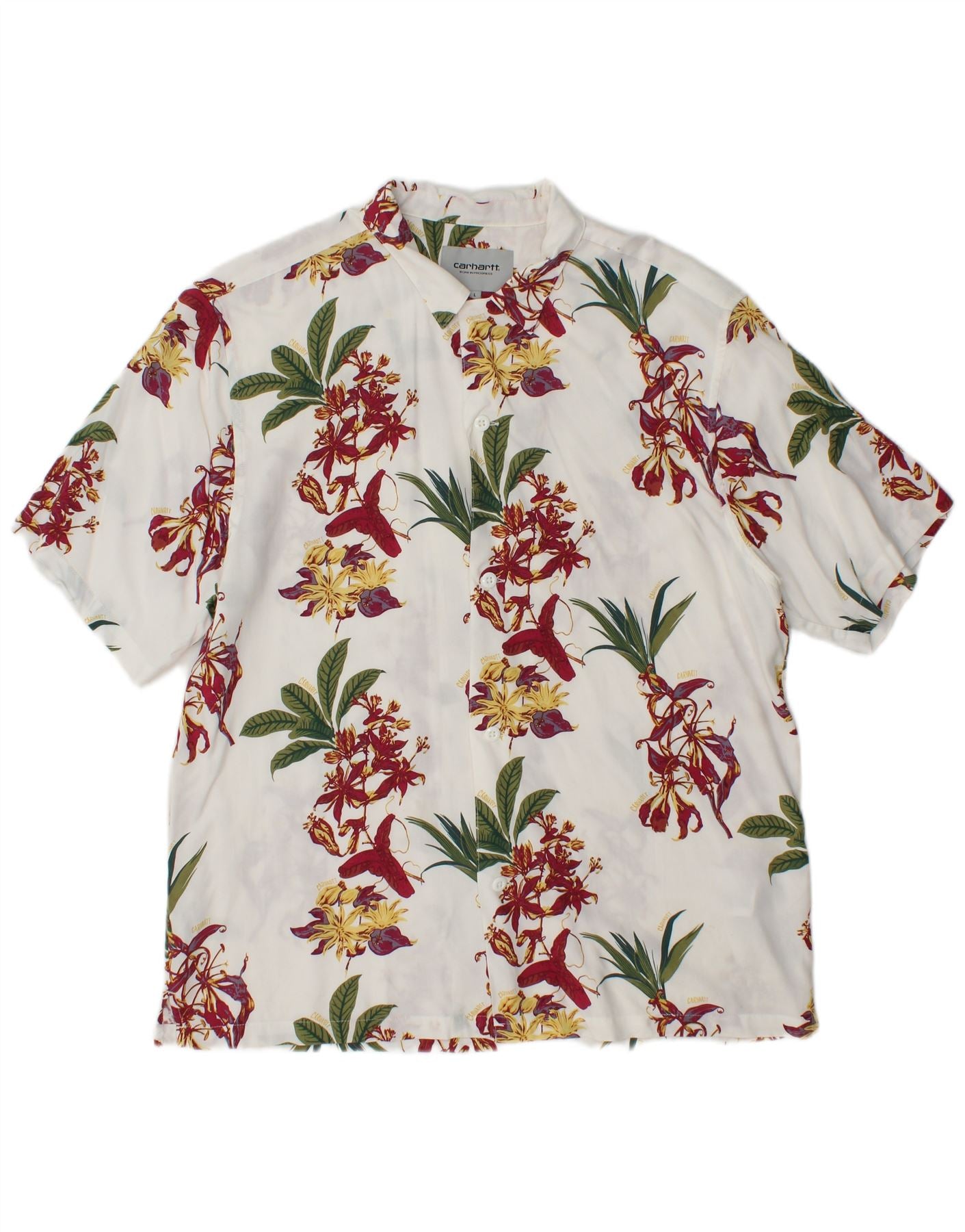 CARHARTT Mens Hawaiian Short Sleeve Shirt Large White Floral Viscose