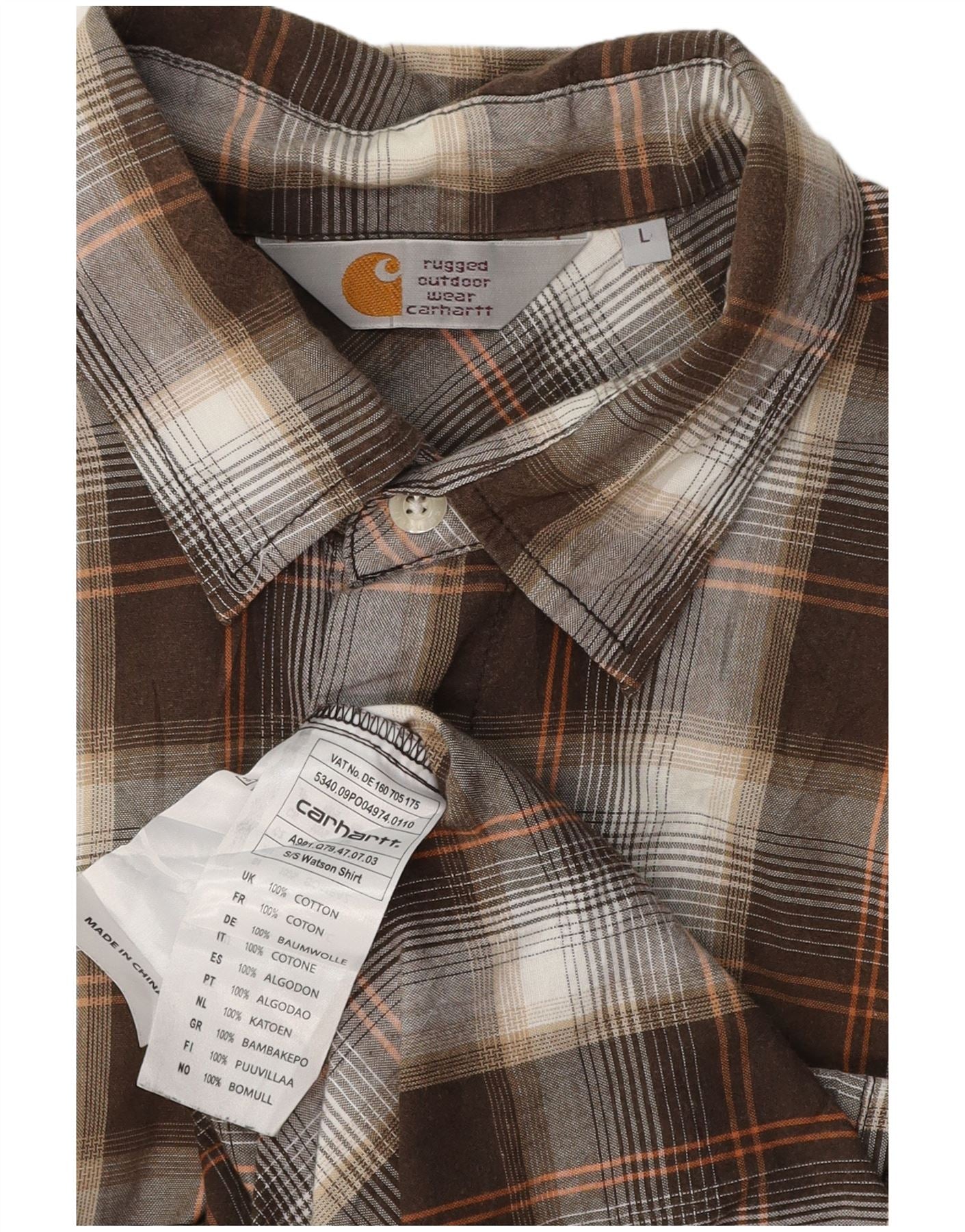CARHARTT Mens Short Sleeve Shirt Large Brown Check Cotton
