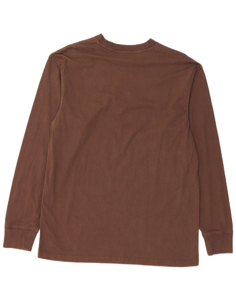 - AI Description: This Carhartt mens long sleeve T-shirt is crafted from soft 100 percent organic cotton jersey in a rich brown hue. It features a classic round neck and long sleeves. The regular fit ensures comfortable wear. A distinctive graphic logo accent is prominently displayed. This pullover style offers a timeless, casual look, perfect for everyday wear.