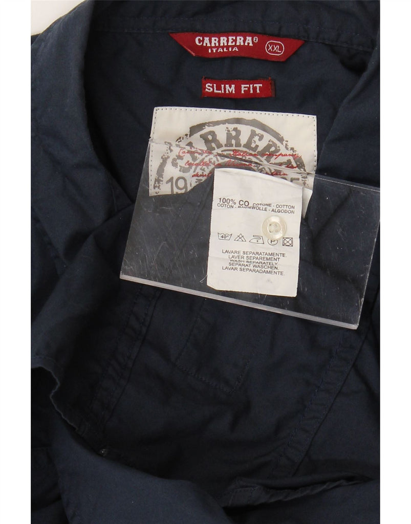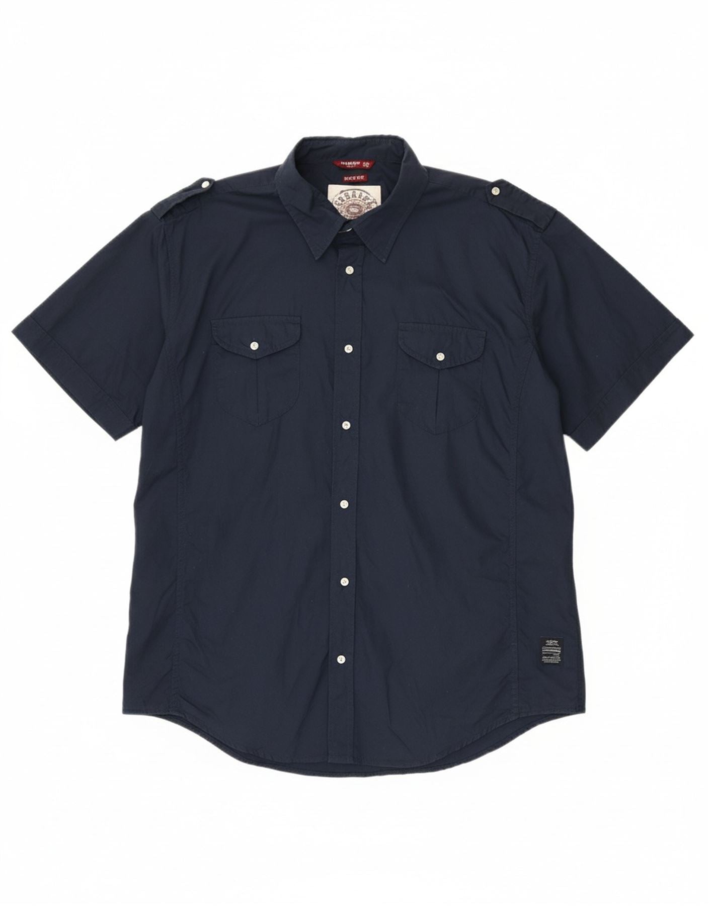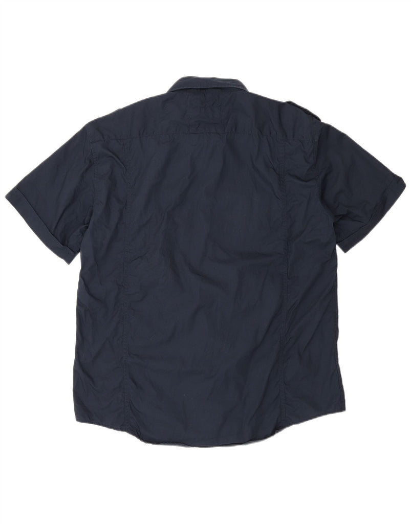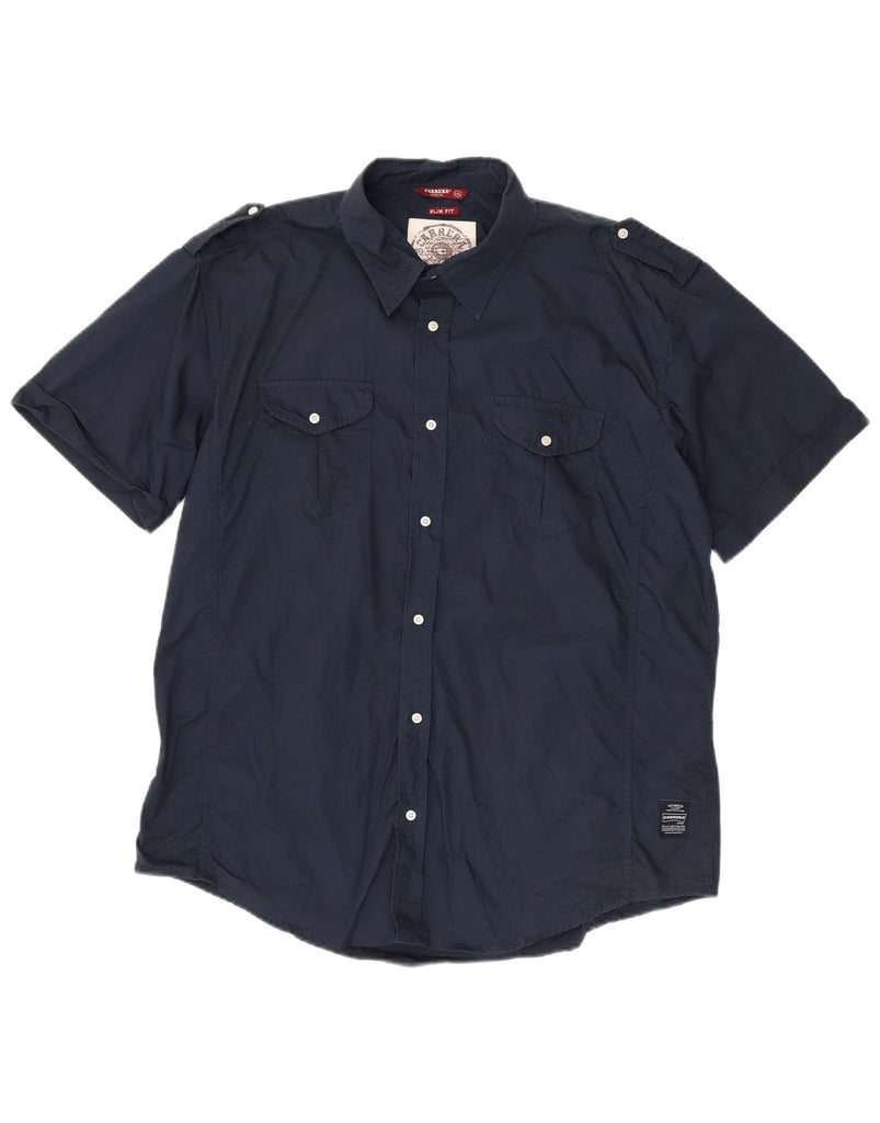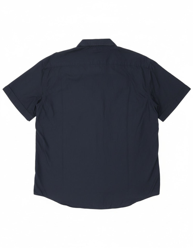 CARRERA Mens Military Slim Fit Short Sleeve Shirt 2XL Navy Blue Cotton