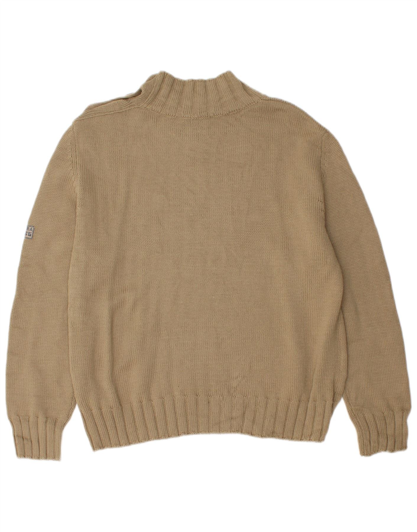 CARRERA Womens Button Neck Jumper Sweater UK 18 XL Beige Acrylic