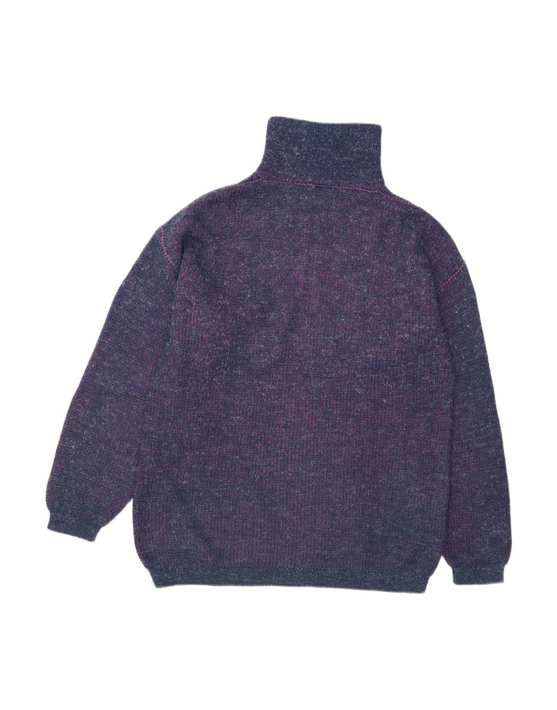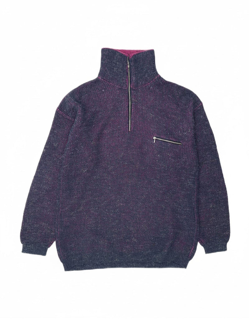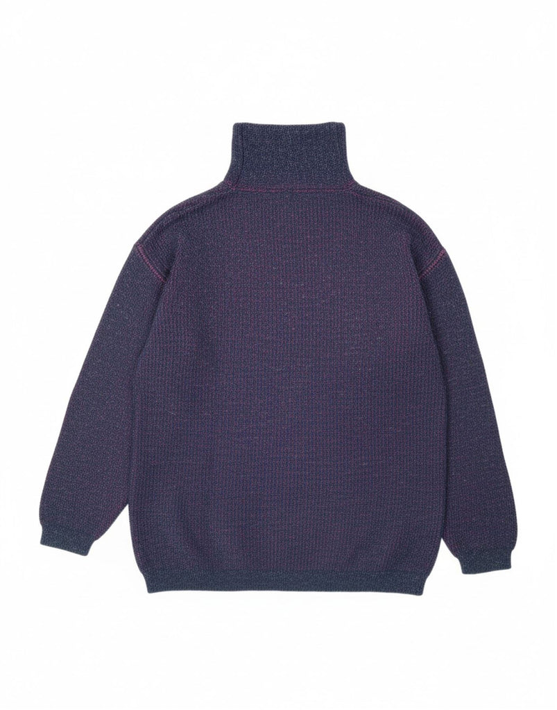 CARRERA Womens Zip Neck Jumper Sweater Medium Navy Blue Flecked Acrylic