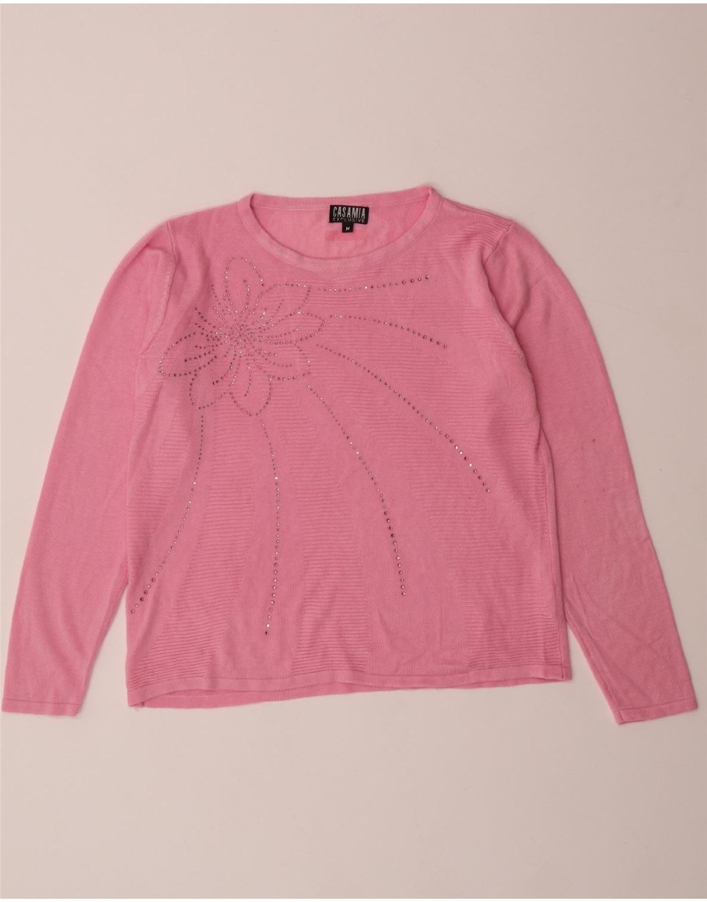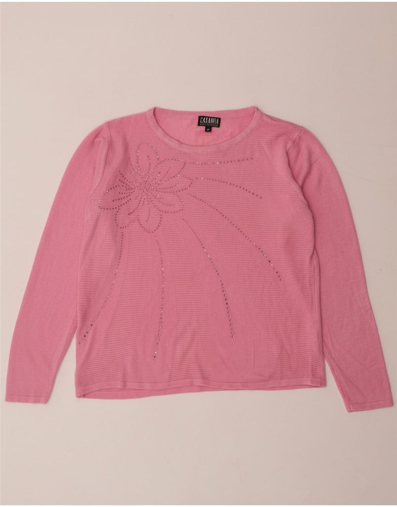 CASAMIA Womens Crop Crew Neck Jumper Sweater UK 14 Medium Pink Floral