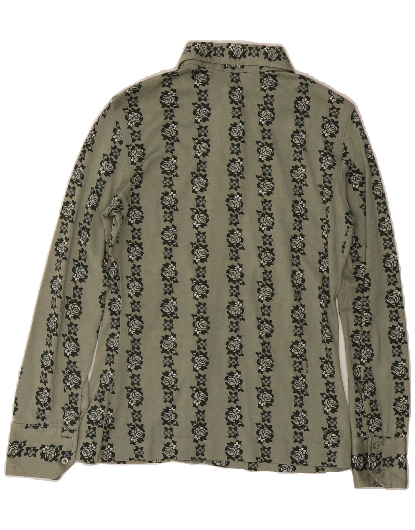 CELINE Womens Shirt IT 42 Medium Khaki Floral Cotton Designer