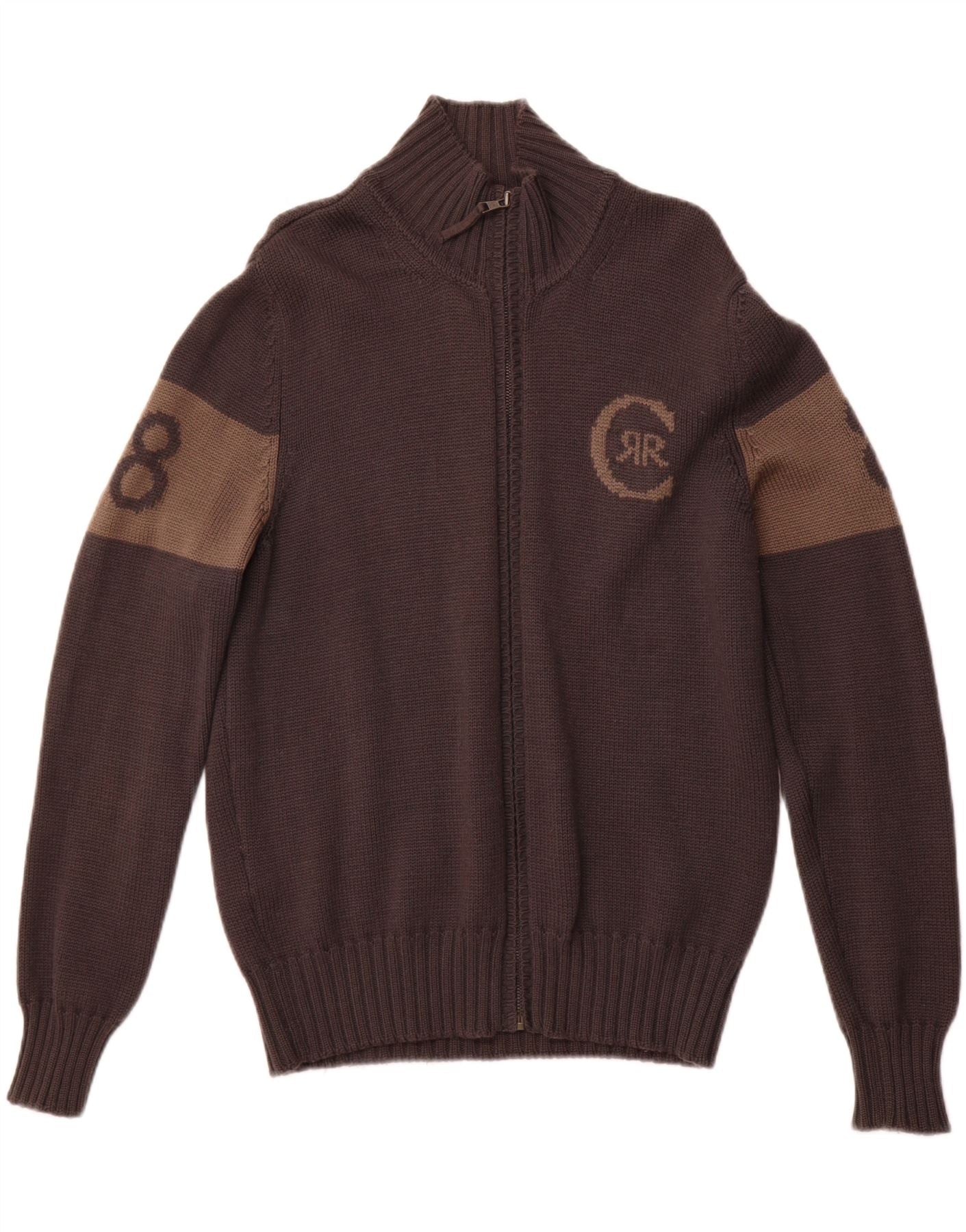 CERRUTI 1881 Mens Graphic Cardigan Sweater Large Grey Colourblock New Wool