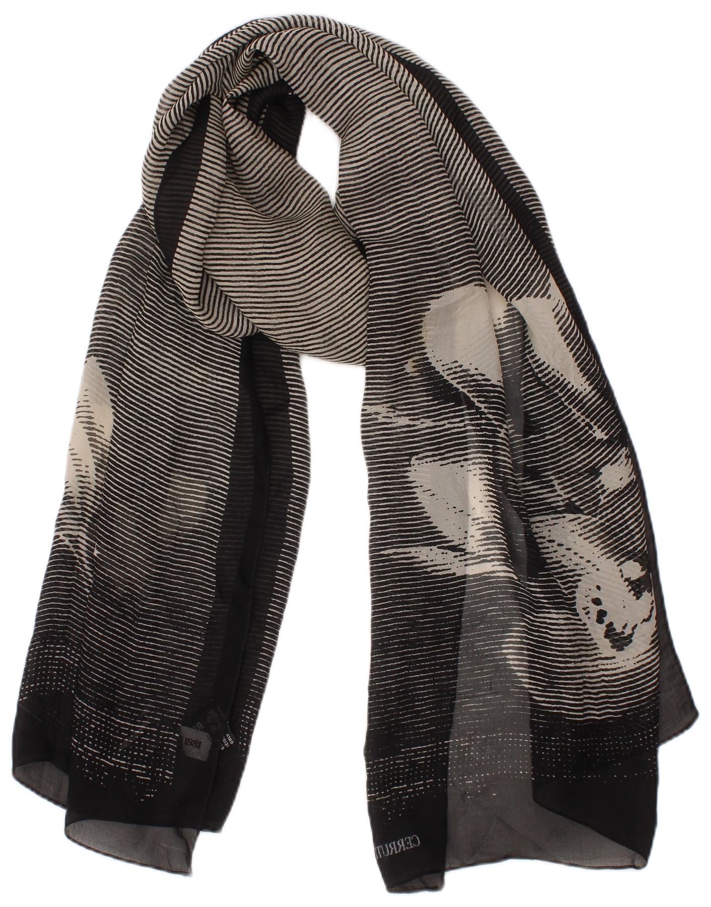 CERRUTI 1881 Womens Graphic Rectangle Scarf One Size Black Floral Designer