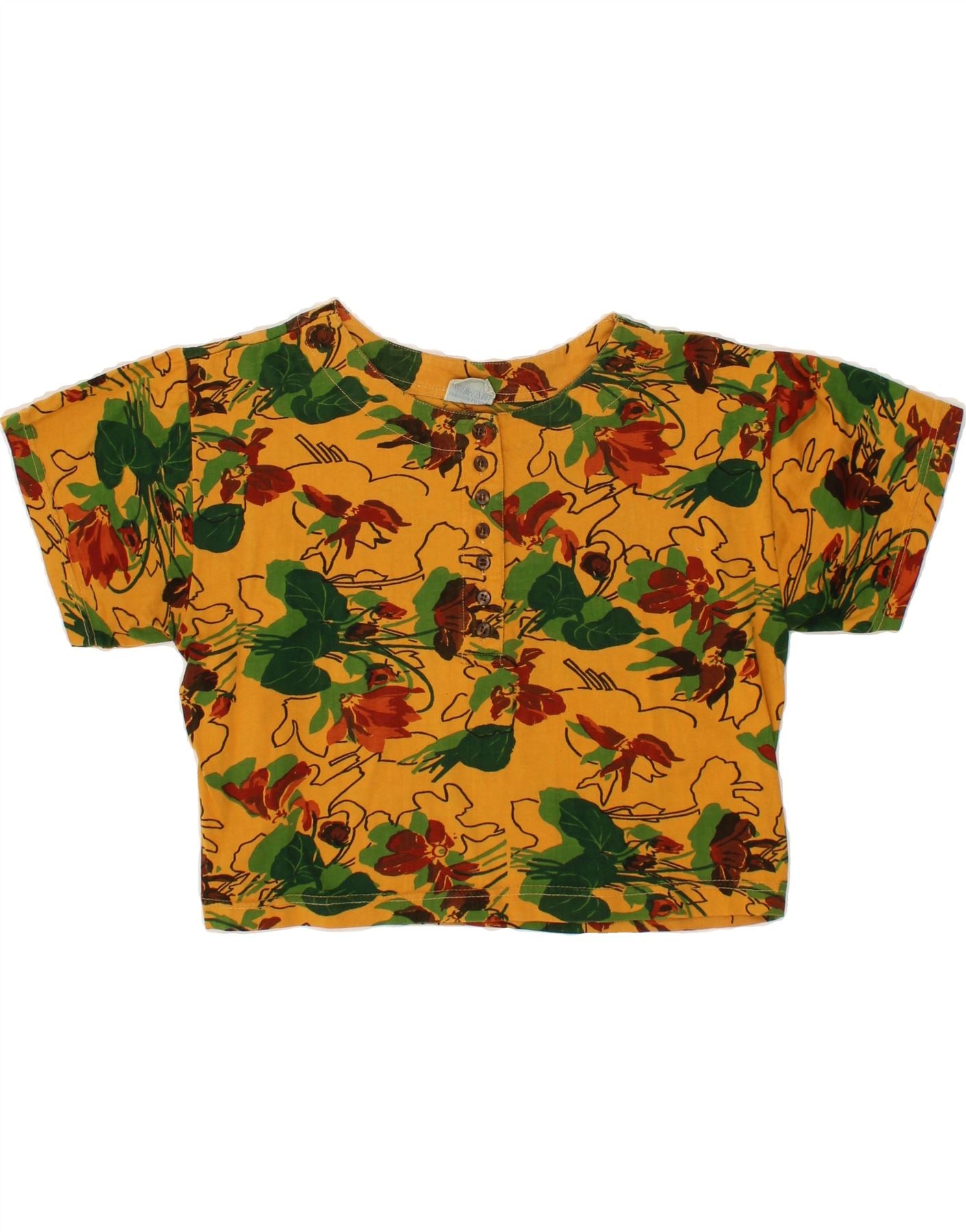 CHADIA Womens Crop T-Shirt Top UK 12 Medium Yellow Floral Cotton