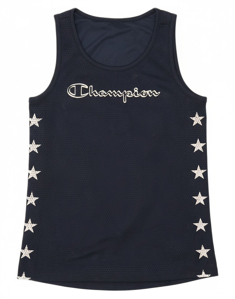 CHAMPION Boys Apparel Graphic Vest Top 13-14 Years XL Navy Blue Polyester