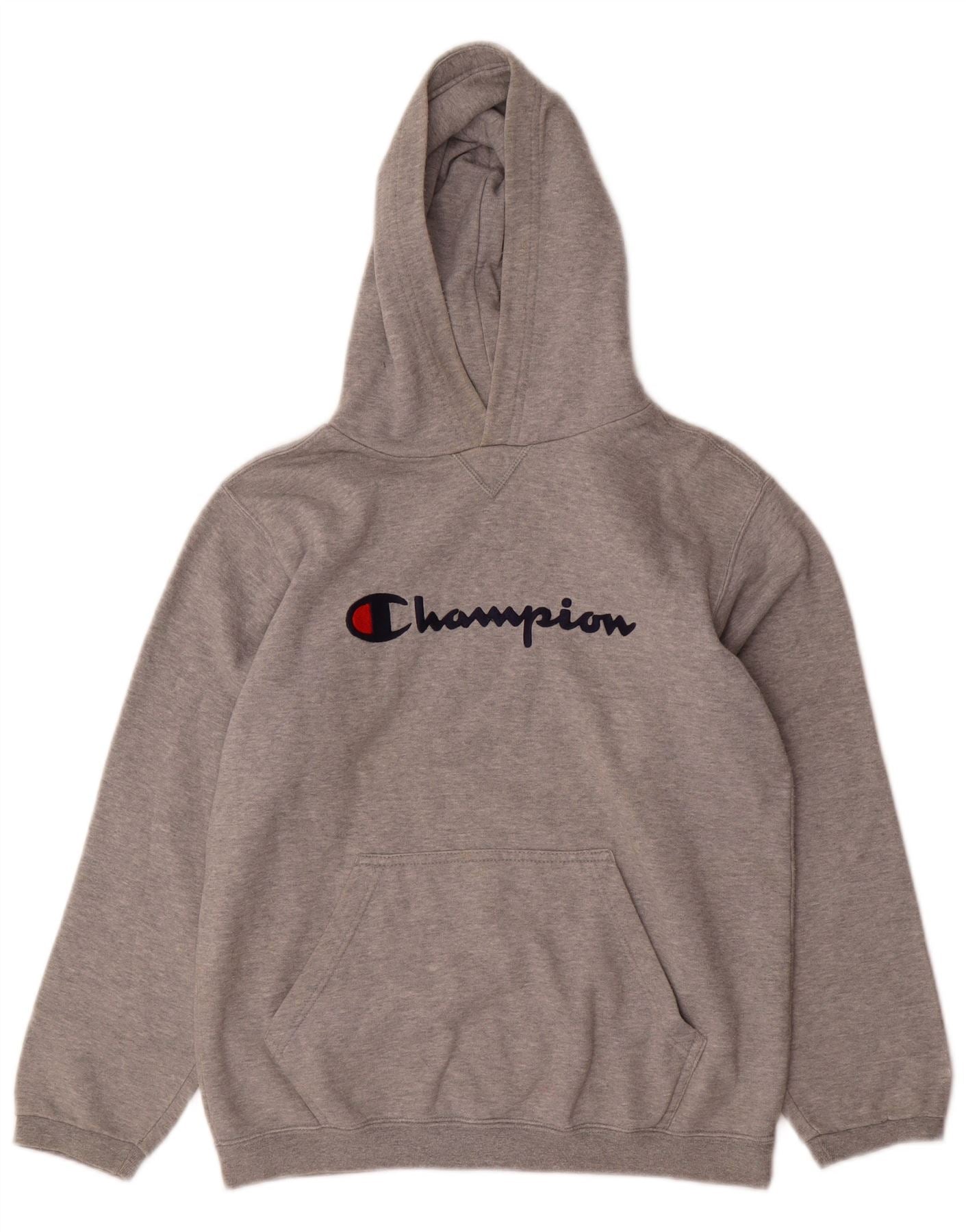 CHAMPION Boys Graphic Hoodie Jumper 11-12 Years Grey Cotton