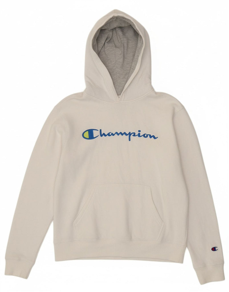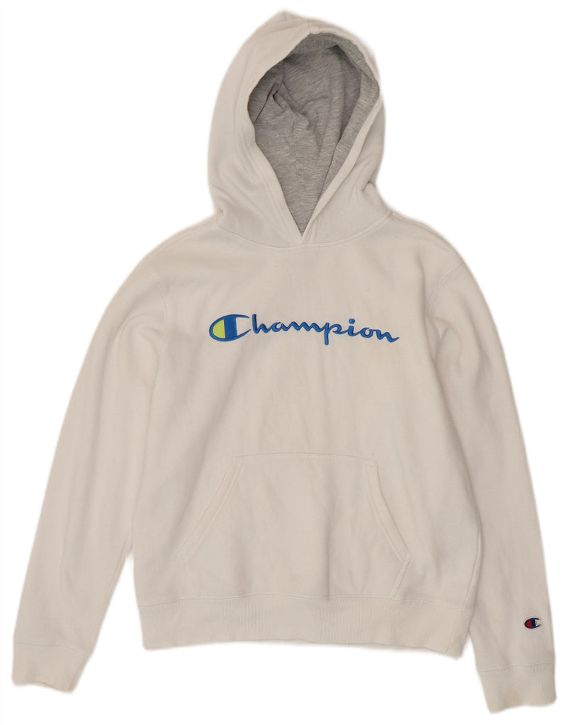 CHAMPION Boys Graphic Hoodie Jumper 12-13 Years Large White Cotton Sports