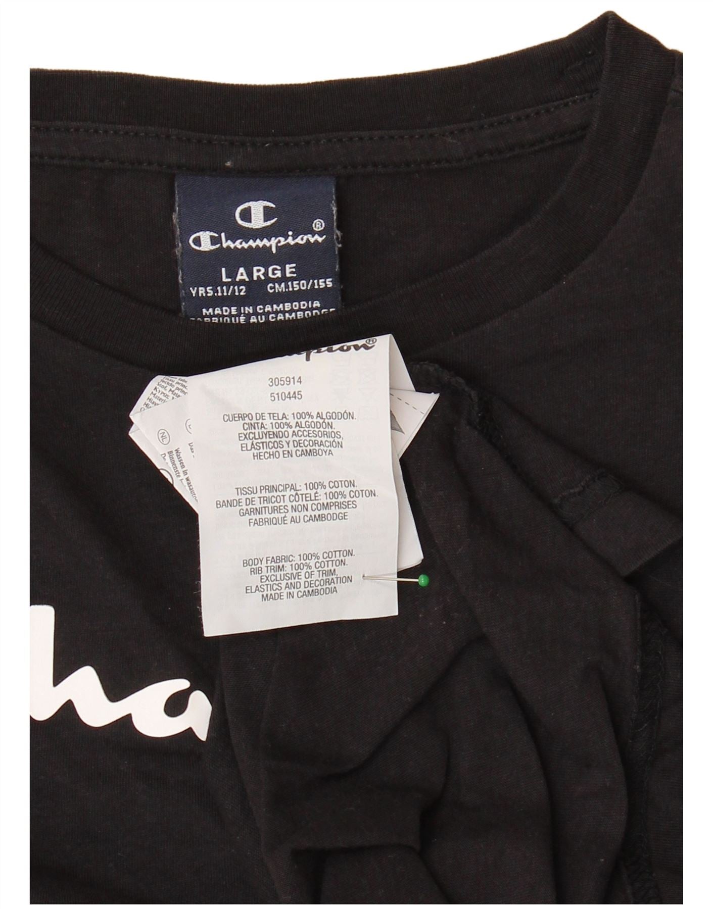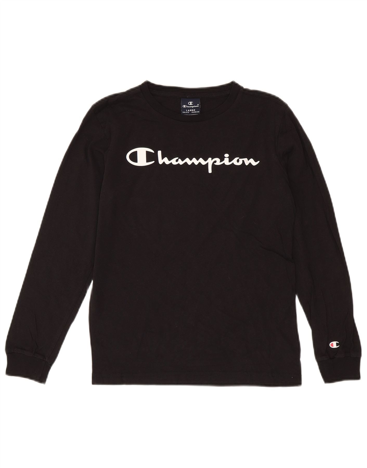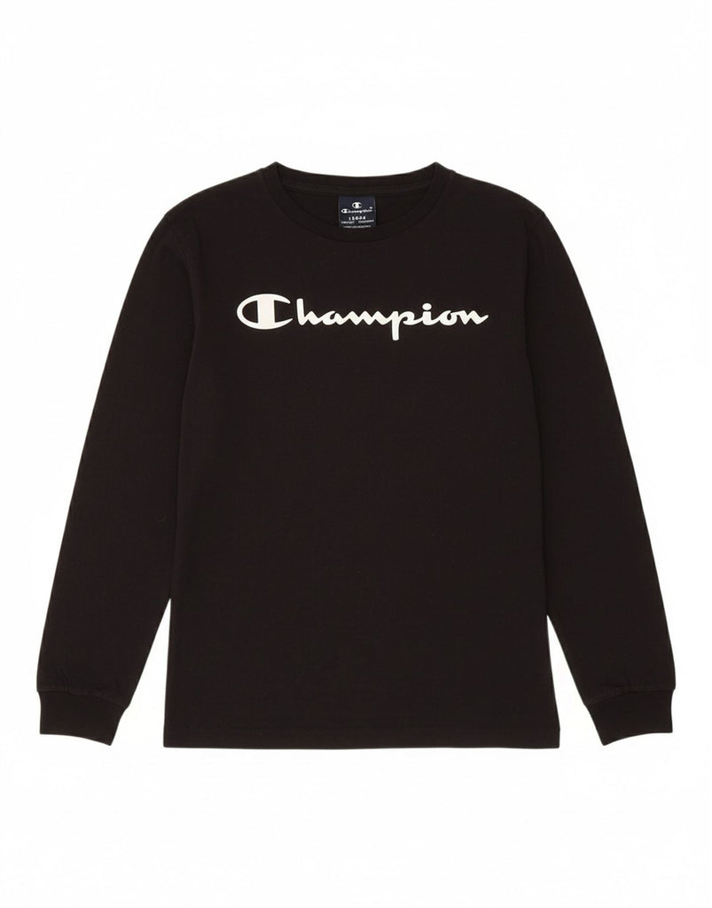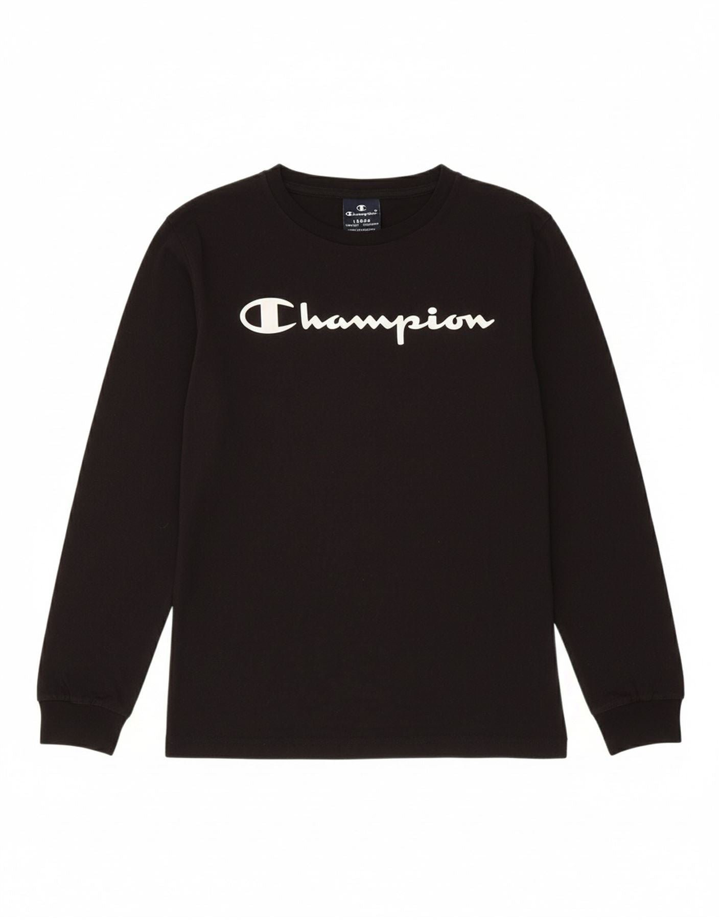 CHAMPION Boys Graphic Top Long Sleeve 11-12 Years Large Black Cotton